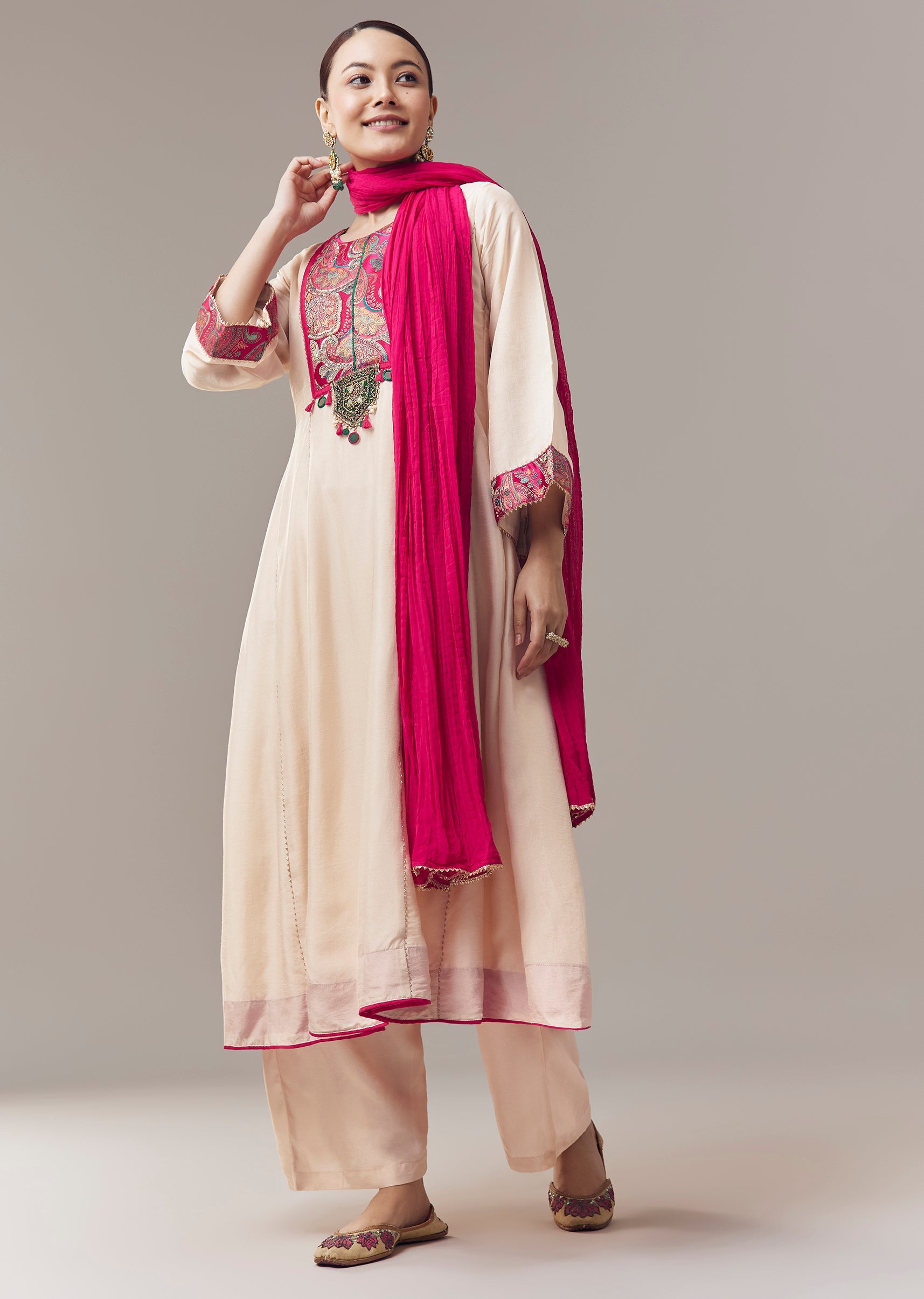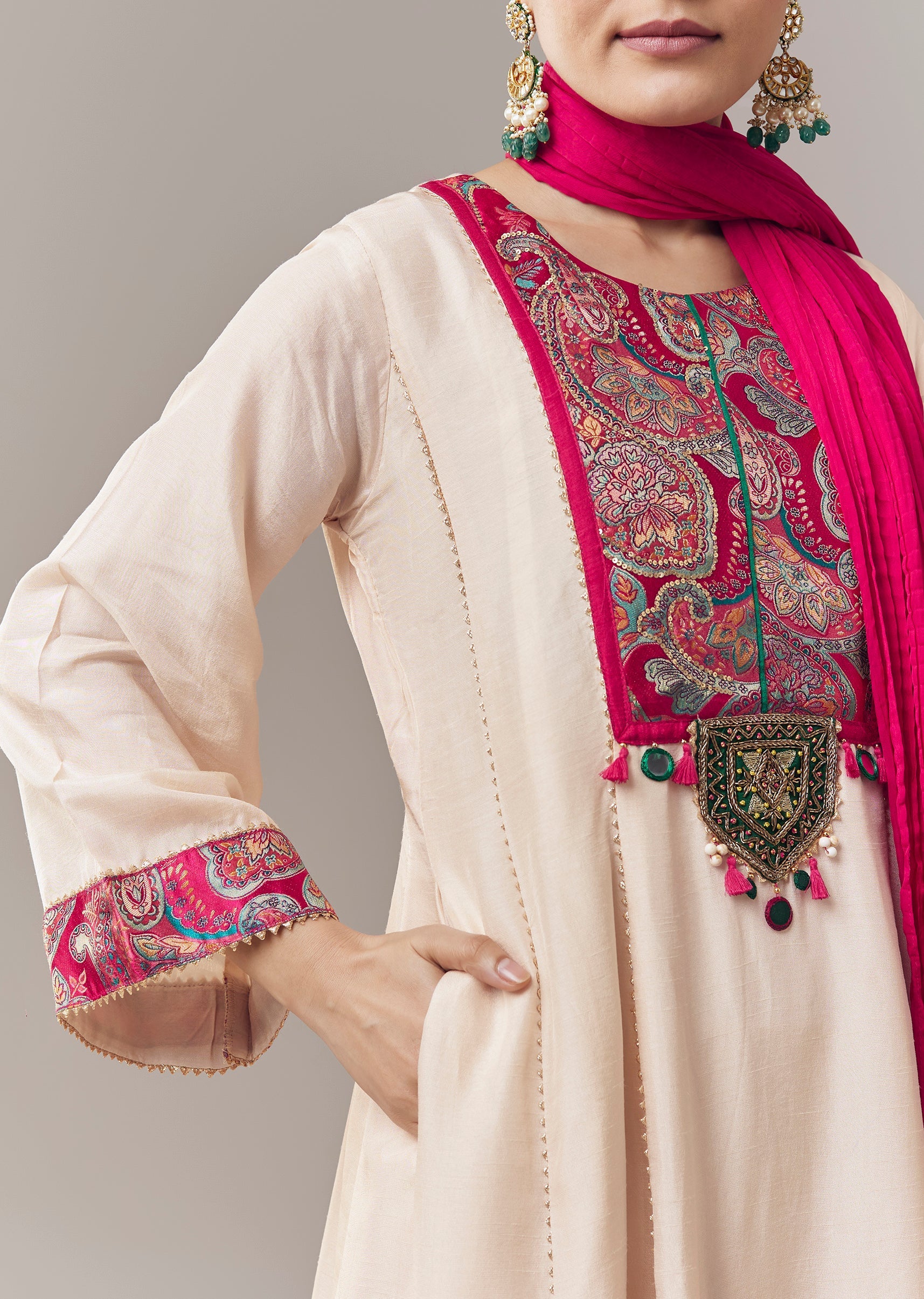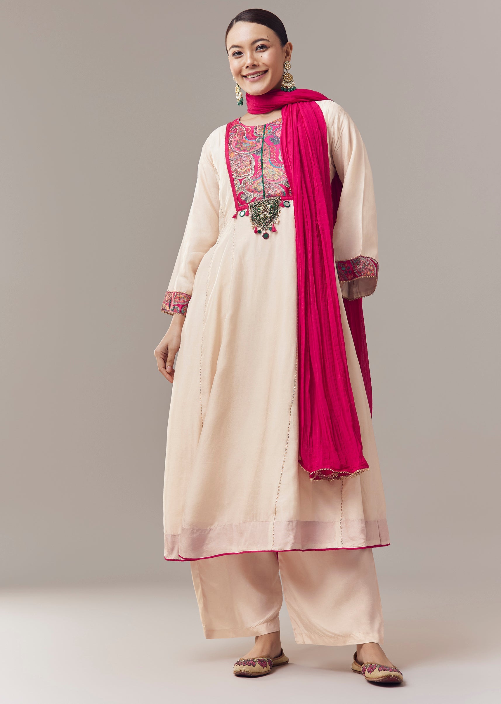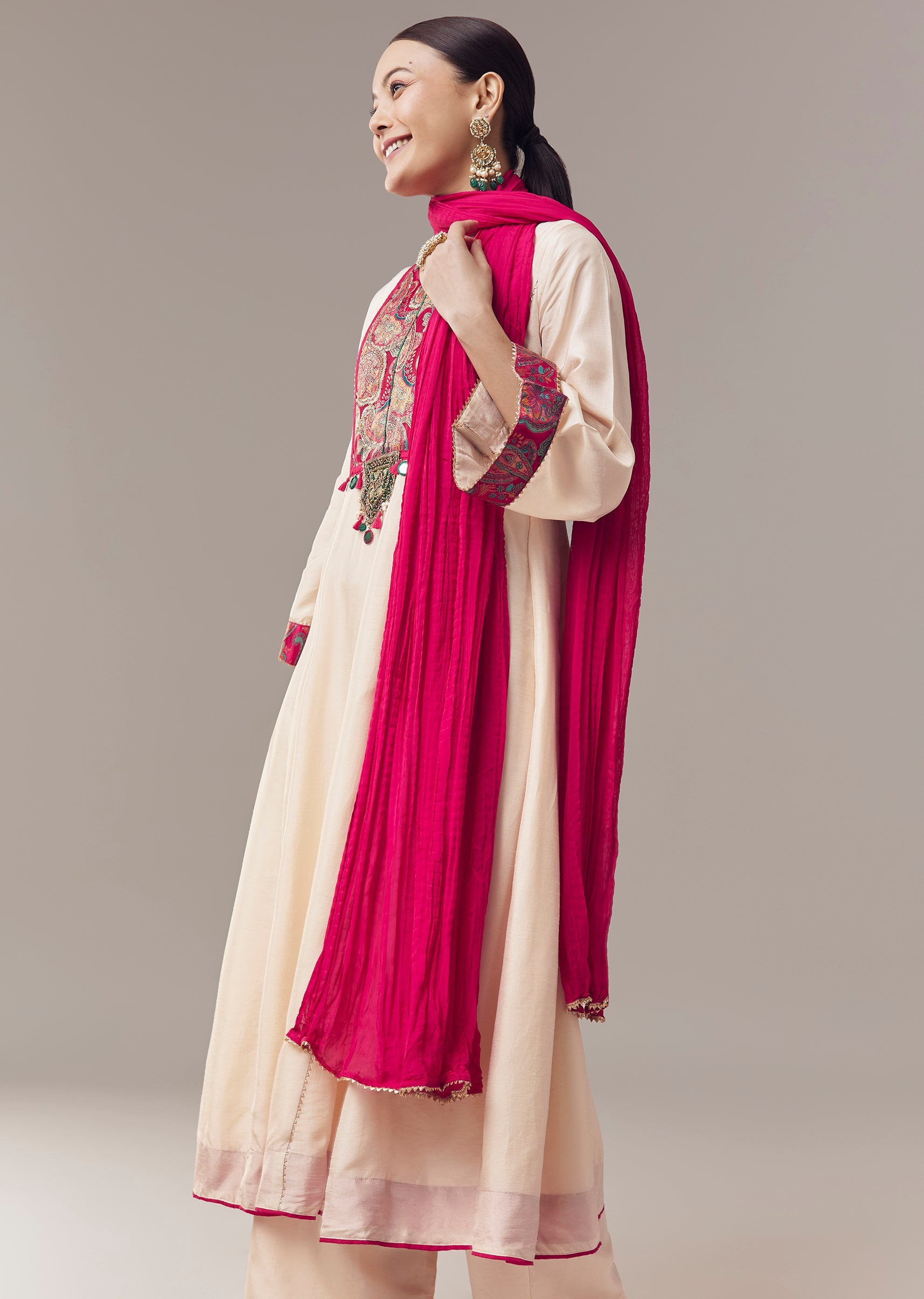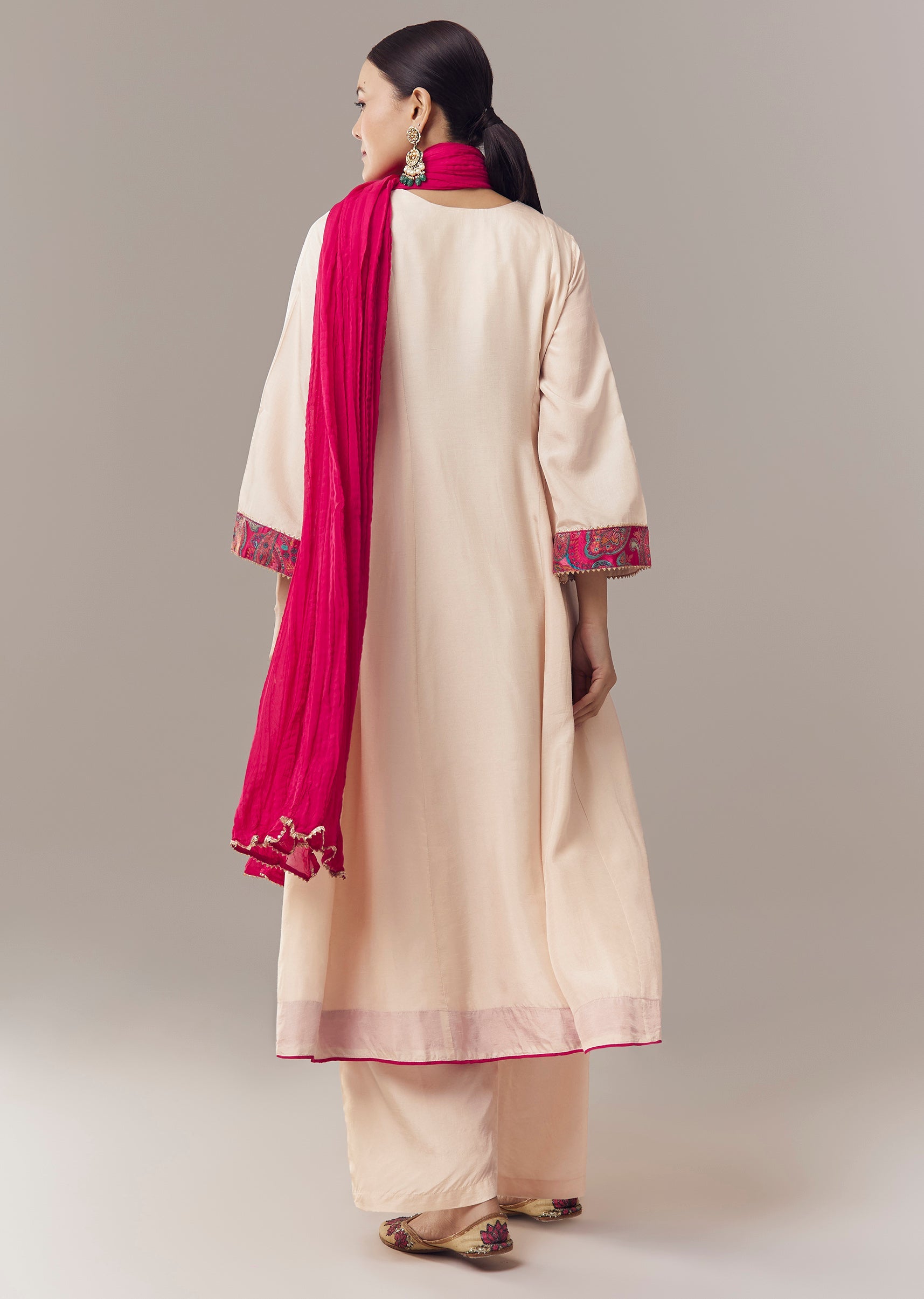 Ivory Anarkali Suit With Gotta Lace Work And Dupatta