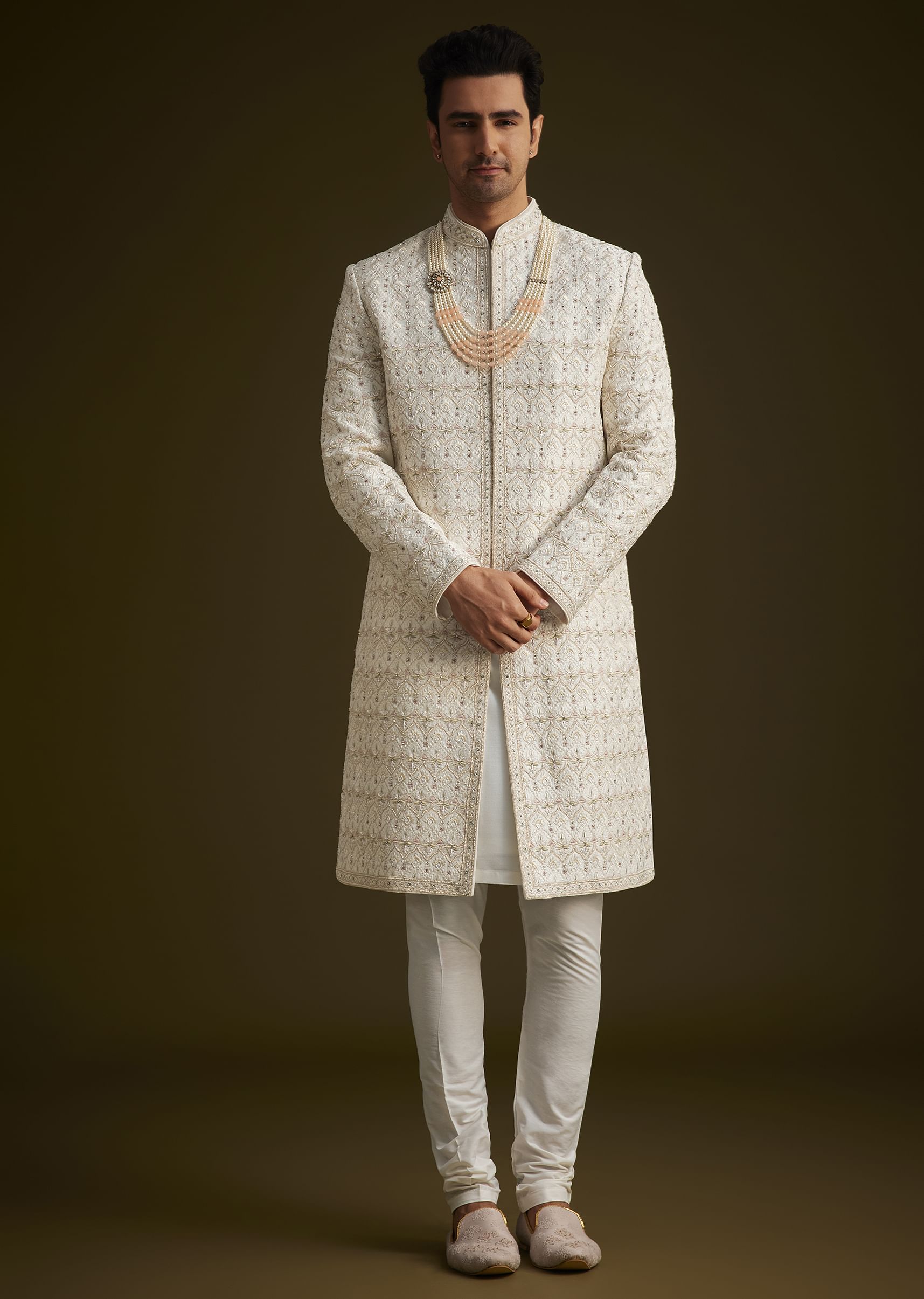 Ivory Embroidered Sherwani With Classic Pearl Detailing