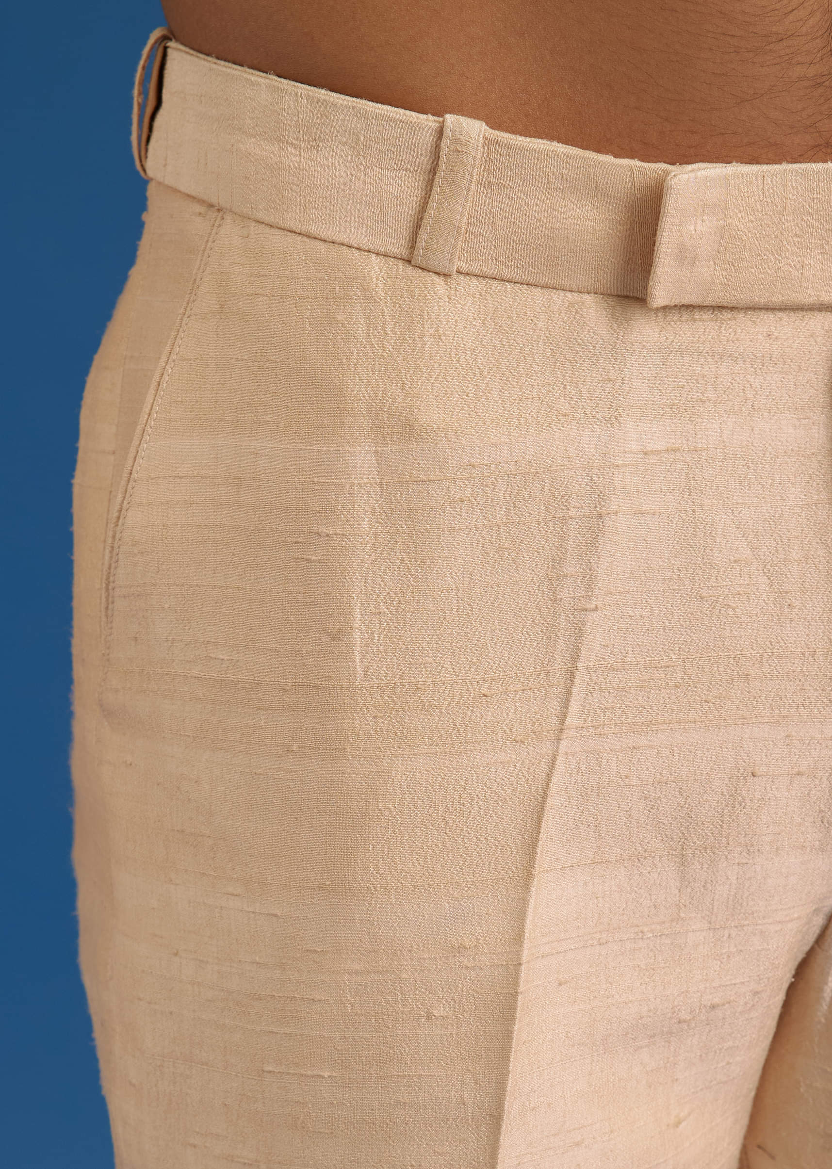 Ivory Raw Silk Sherwani Set With Mixed Hand Work And Organza Satin Accents