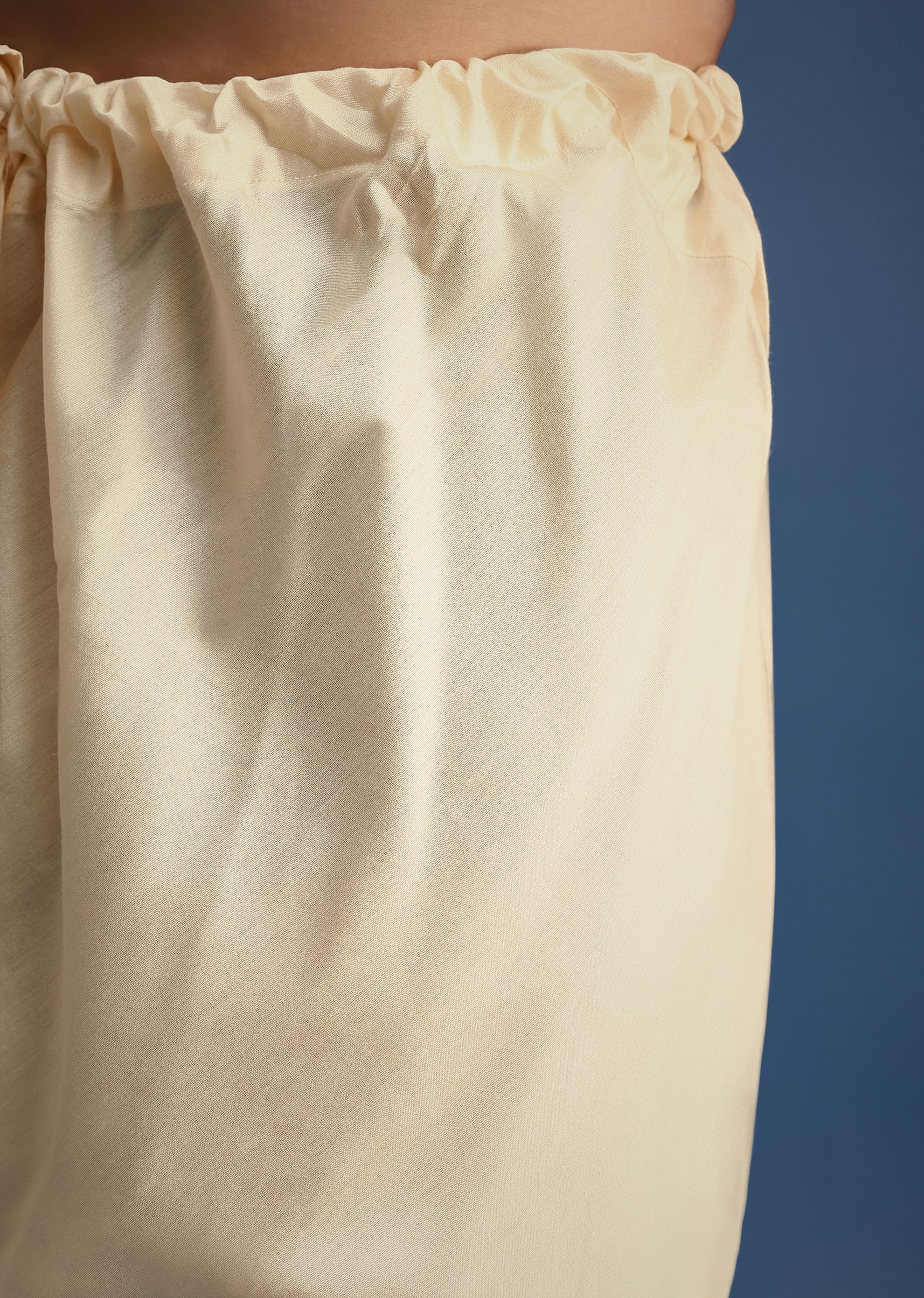 Exude sophistication with our Ivory Sherwani Set crafted in rich art silk and intricately embroidered with beads and zari. This regal attire is perfect for the modern groom combining tradition... More Product Details