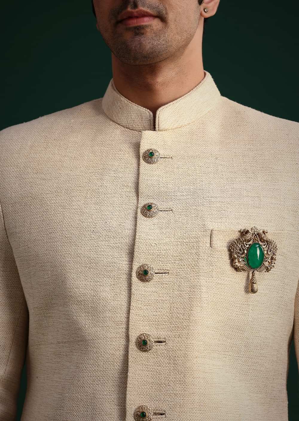 Fit Tips:Ensure the sherwani fits snugly across the shoulders and chest while allowing comfortable movement. Tailor the sleeves and hemline for a polished and sharp silhouette.