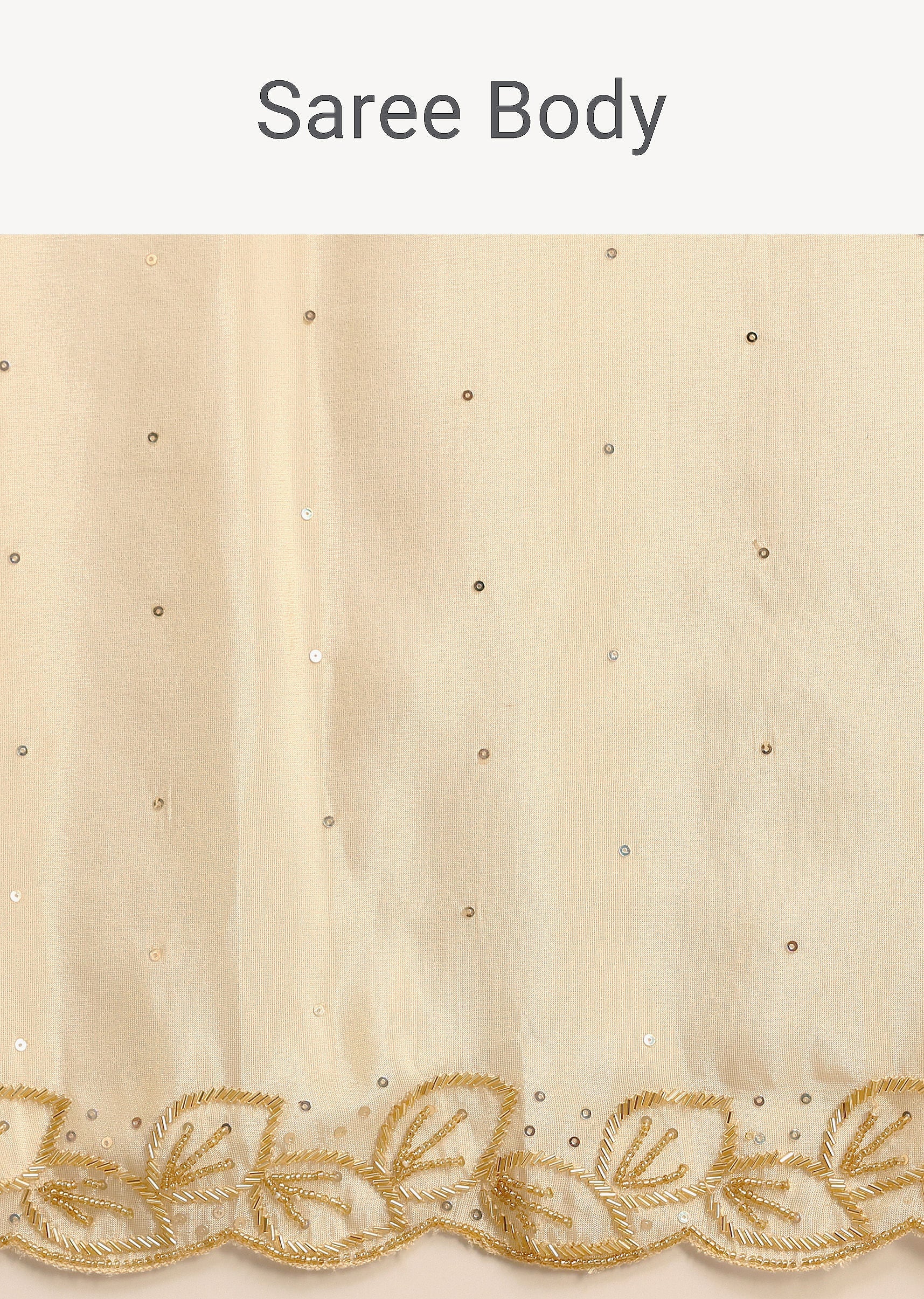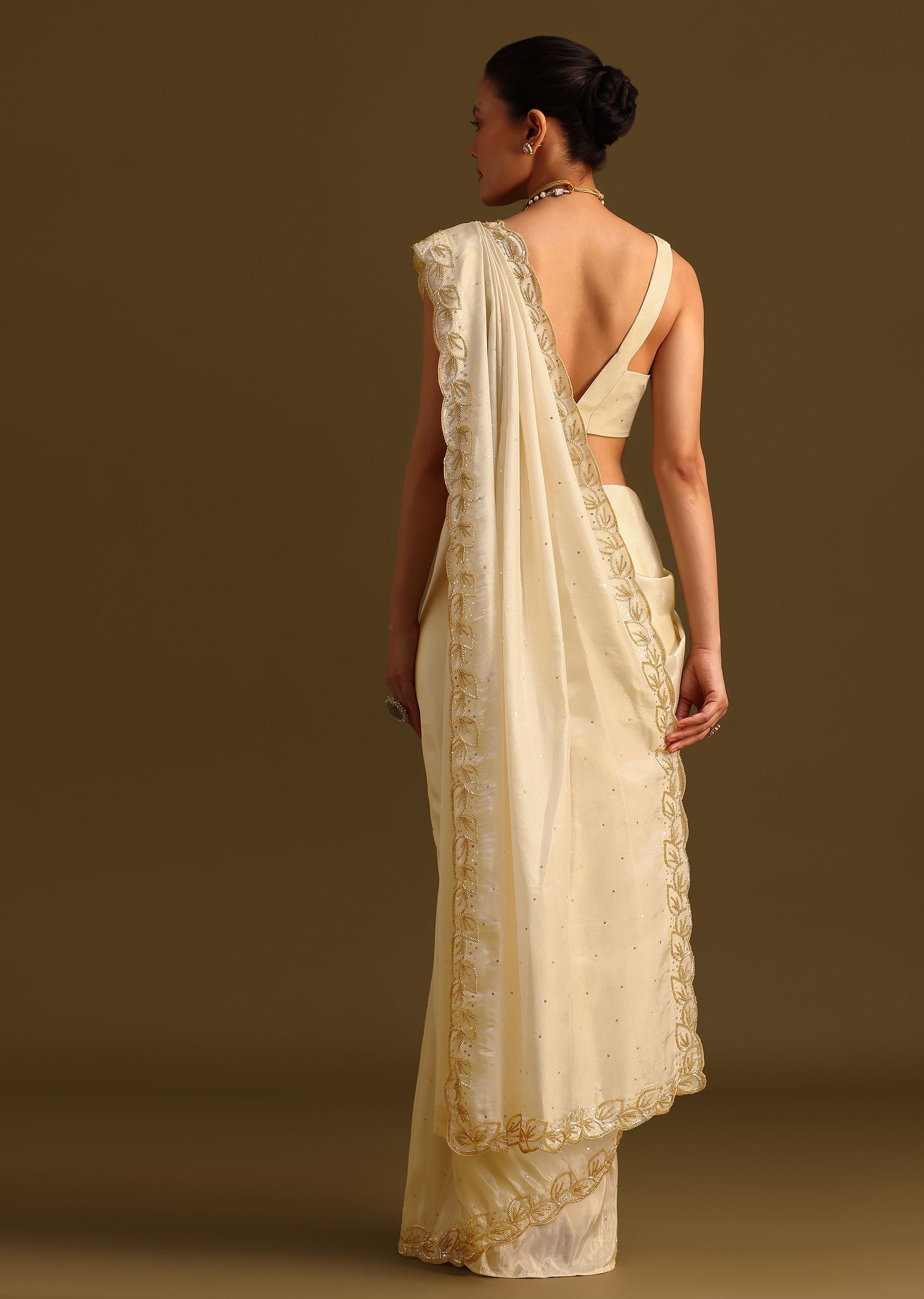 Ivory Tissue Saree With Cutdana Embroidered Border and Unstitched Blouse