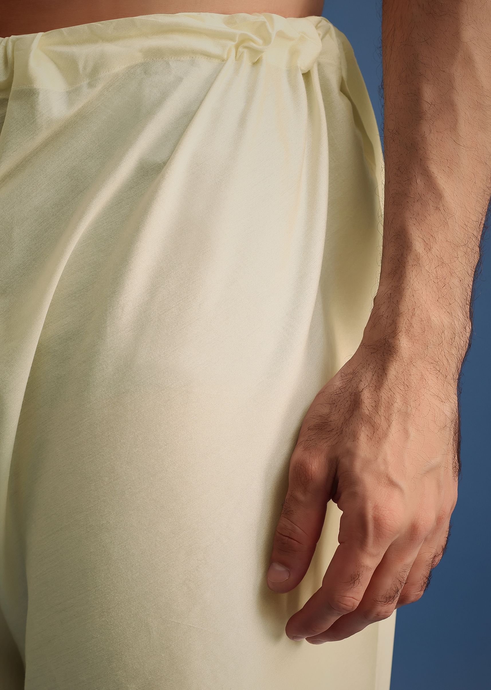 Step into grandeur with our Ivory Art Silk Sherwani Set featuring delicate dori zari and bead embroidery. This elegant set comprises a richly embroidered sherwani and churidar designed to make... More Product Details