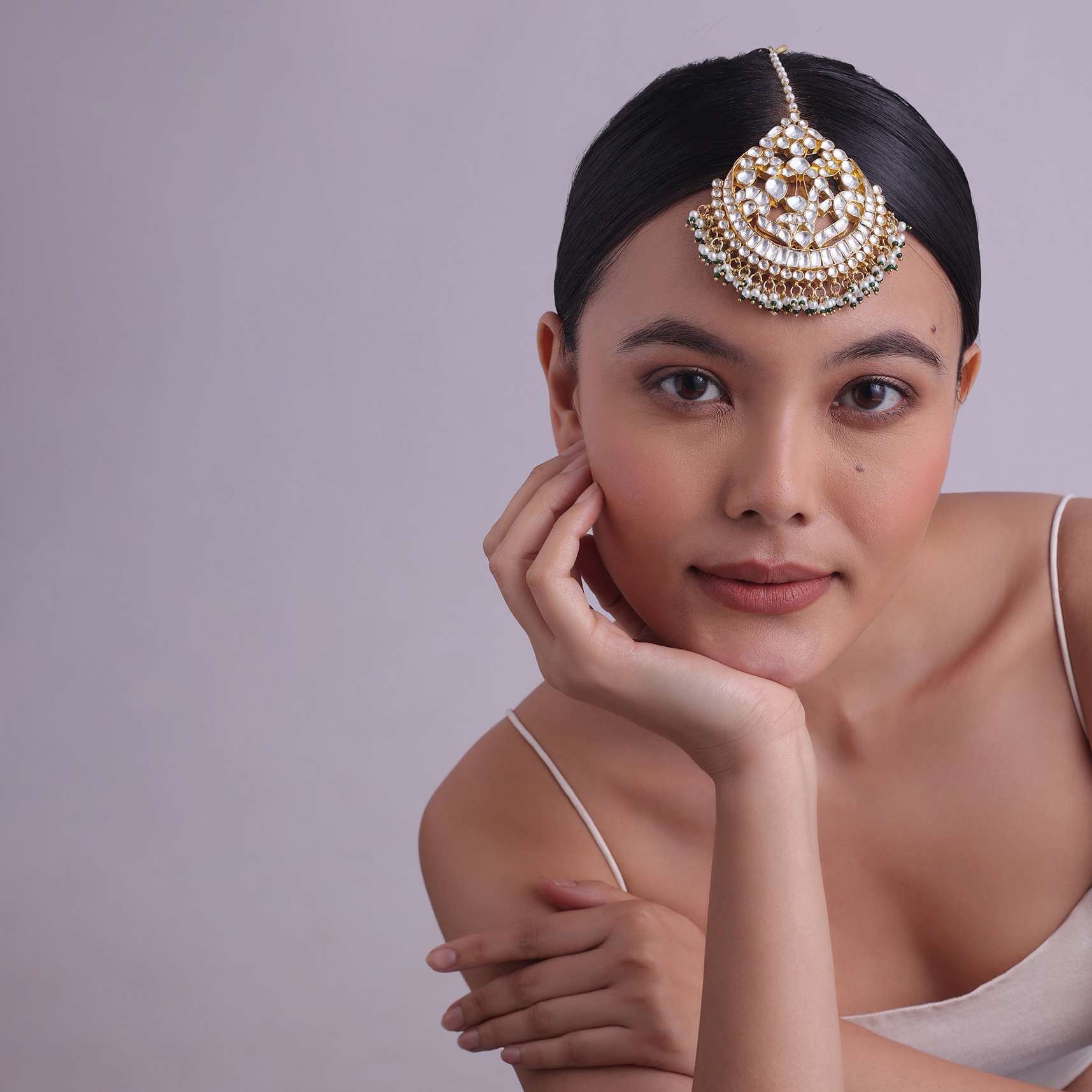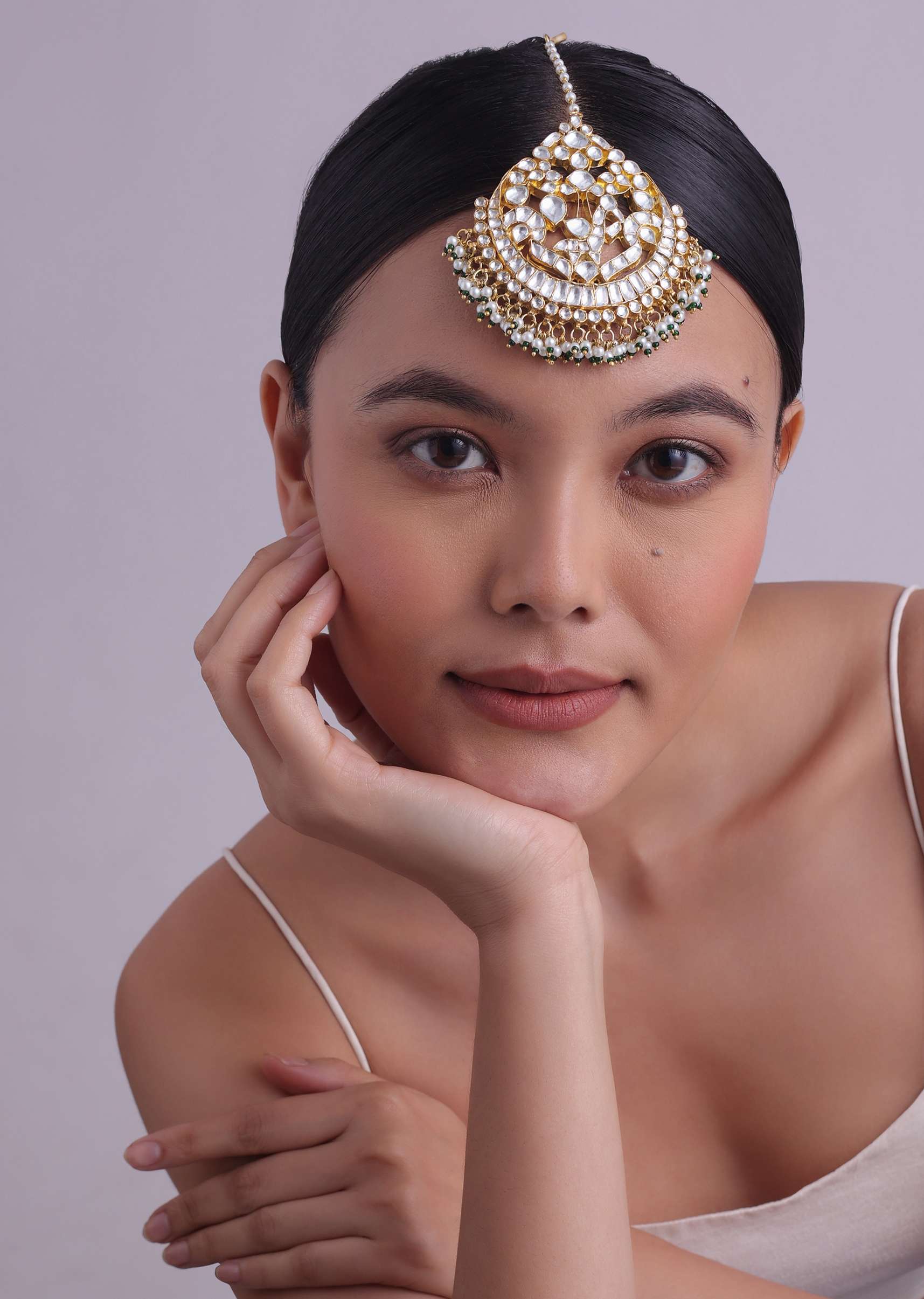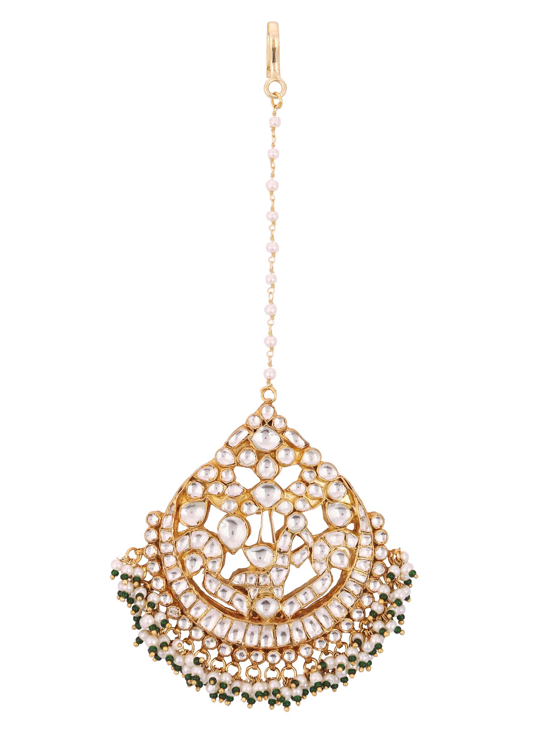 Jadau Kundan Maangtika With Cut Diamond Stones And Pearls