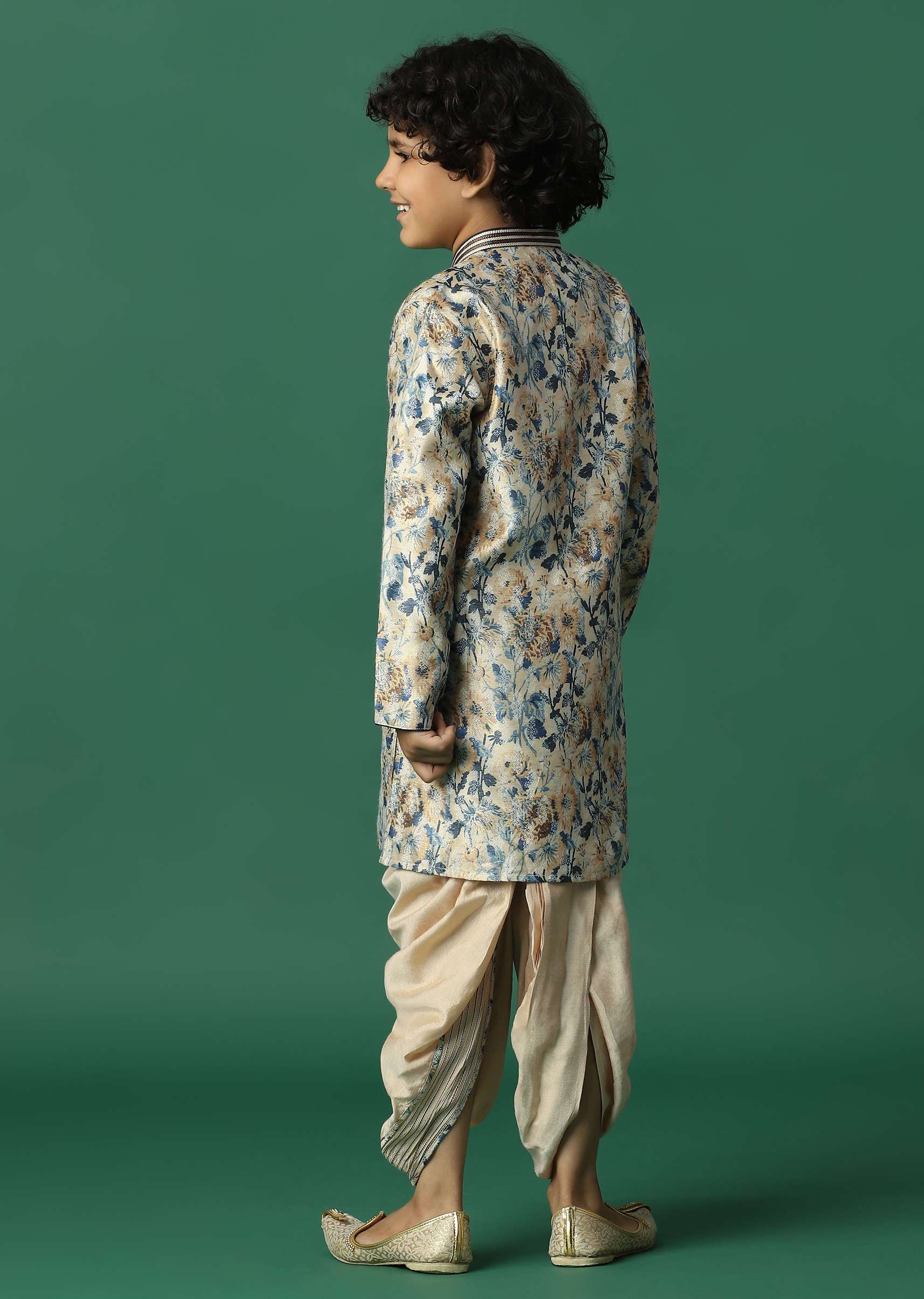 Kalki Beige Boys Dhoti Kurta Set In Silk With Floral Print For Boys