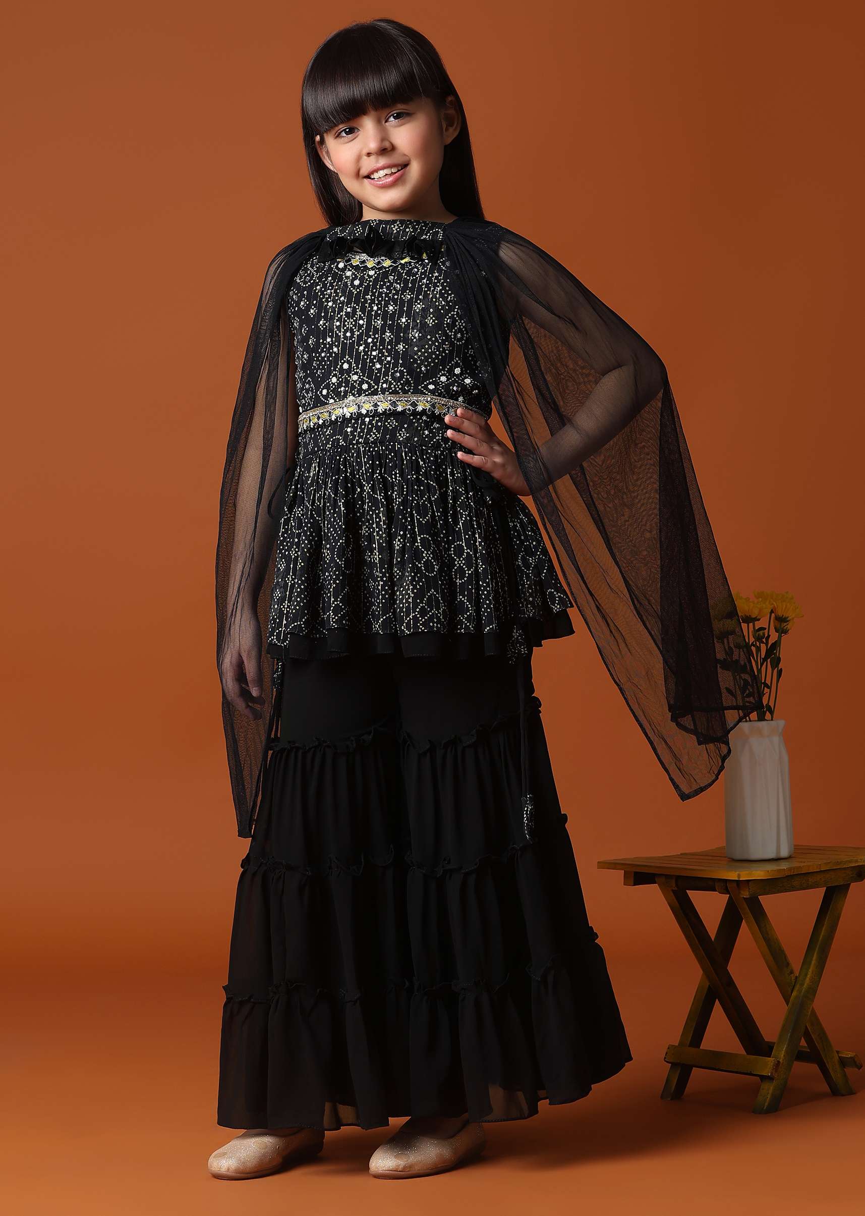 KALKI Black Kurti And Sharara Set With Mirror Work For Girls