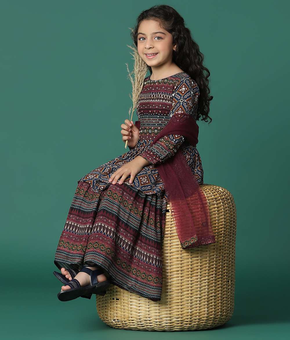 Introducing our chocolate brown kurta and sharara set, a charming addition to your little girl's wardrobe. The kurta features a round neckline that adds an element of sophistication to the outfit.The highlight of this set is the mesmerizing mirror work embroidery that adds a touch of shine to the overall look.The set is completed with a matching dupatta.EVENT - Perfect for Raksha Bandhan, Ganesh Chaturthi, and other formal events. Change folds regularly. Awarded as the Most Trusted Brand, we're delivering styles you love, just as promised.