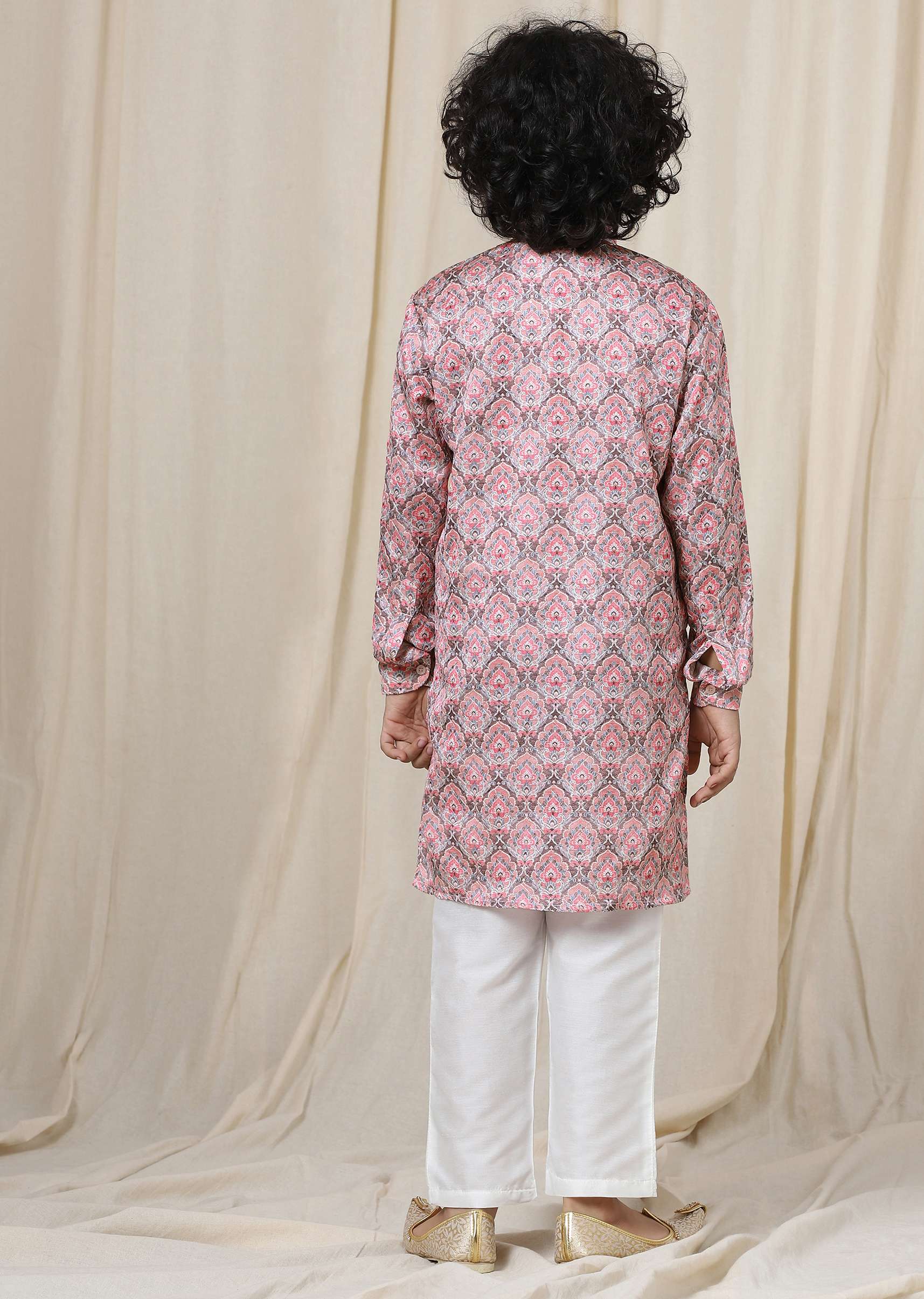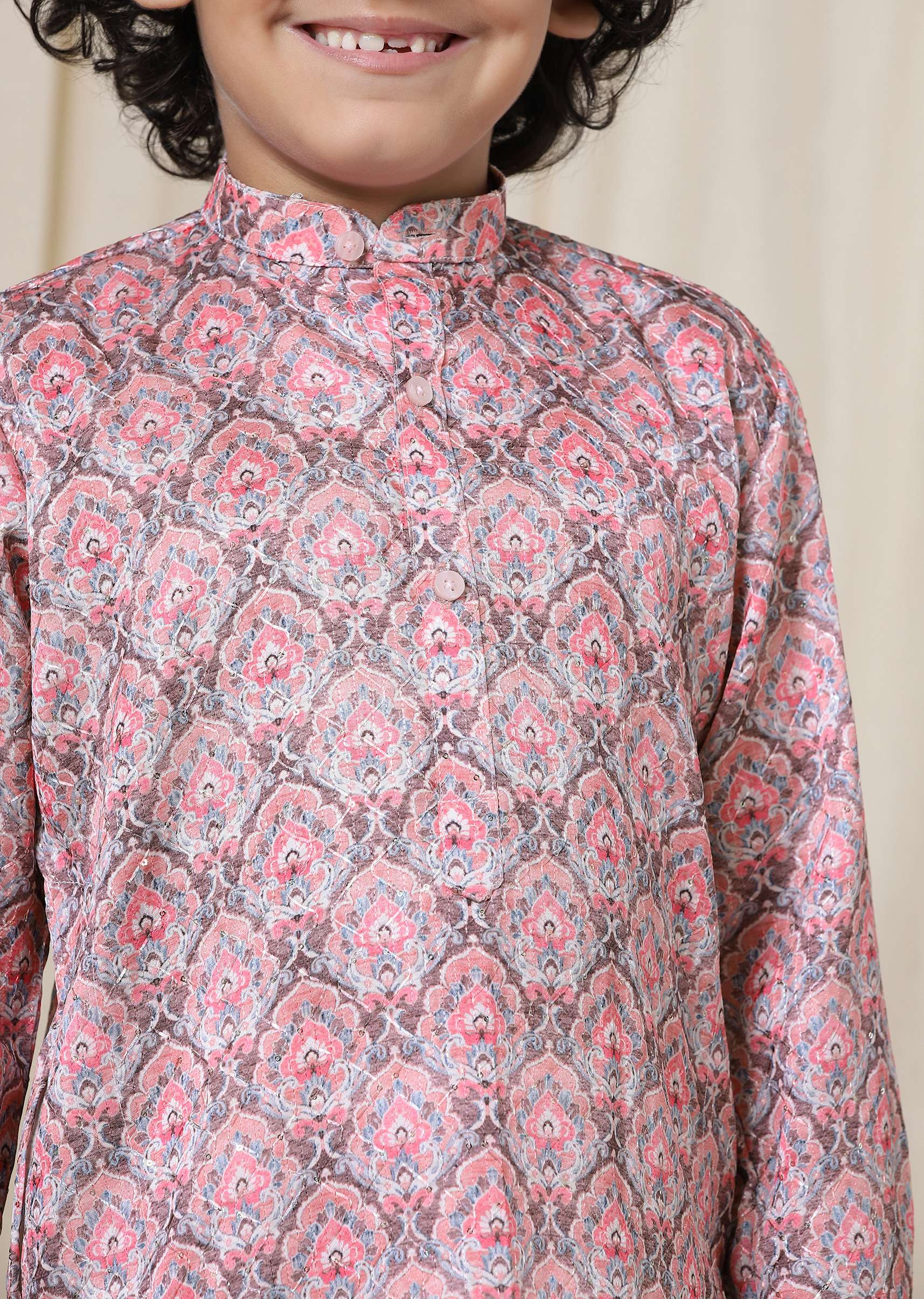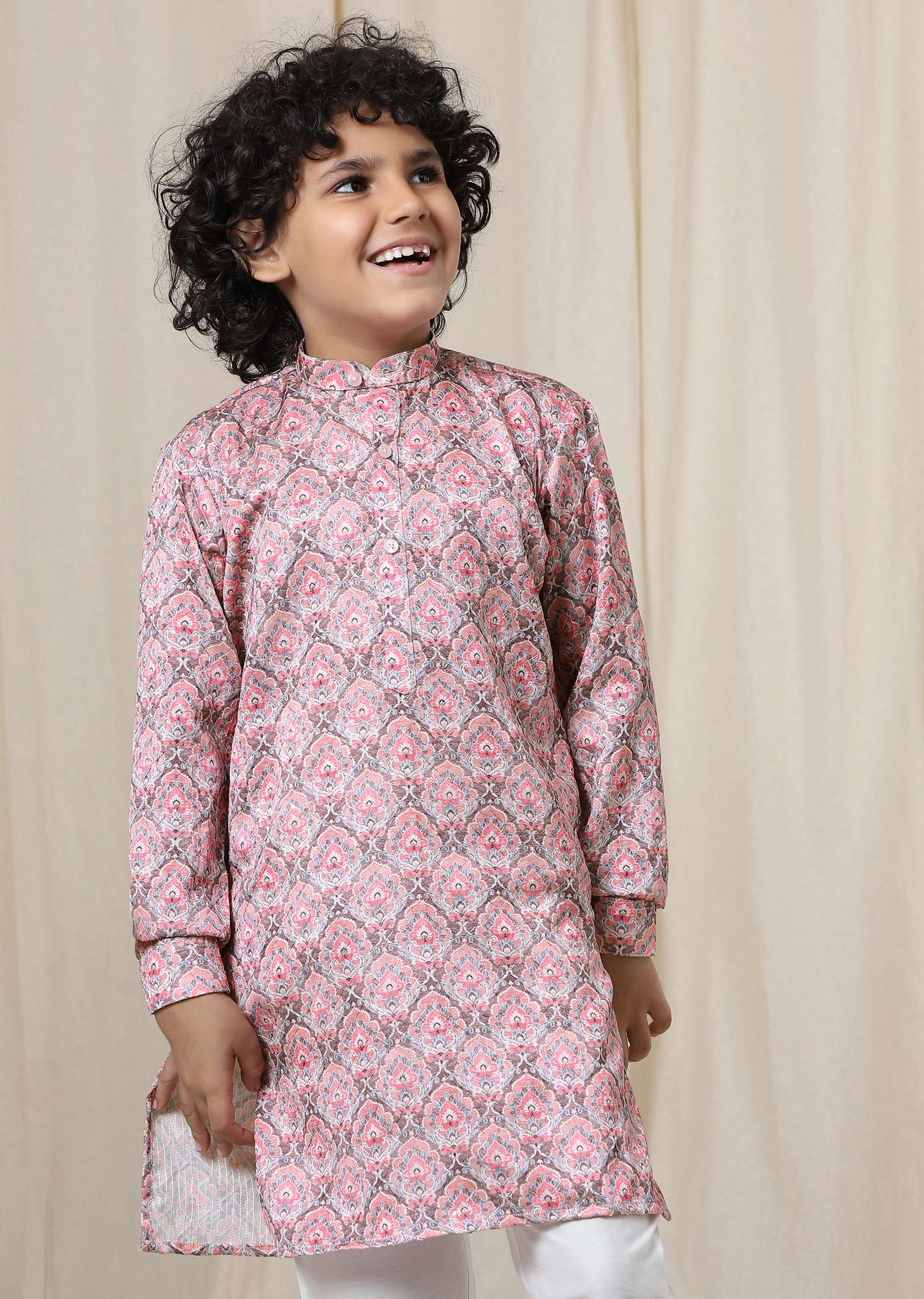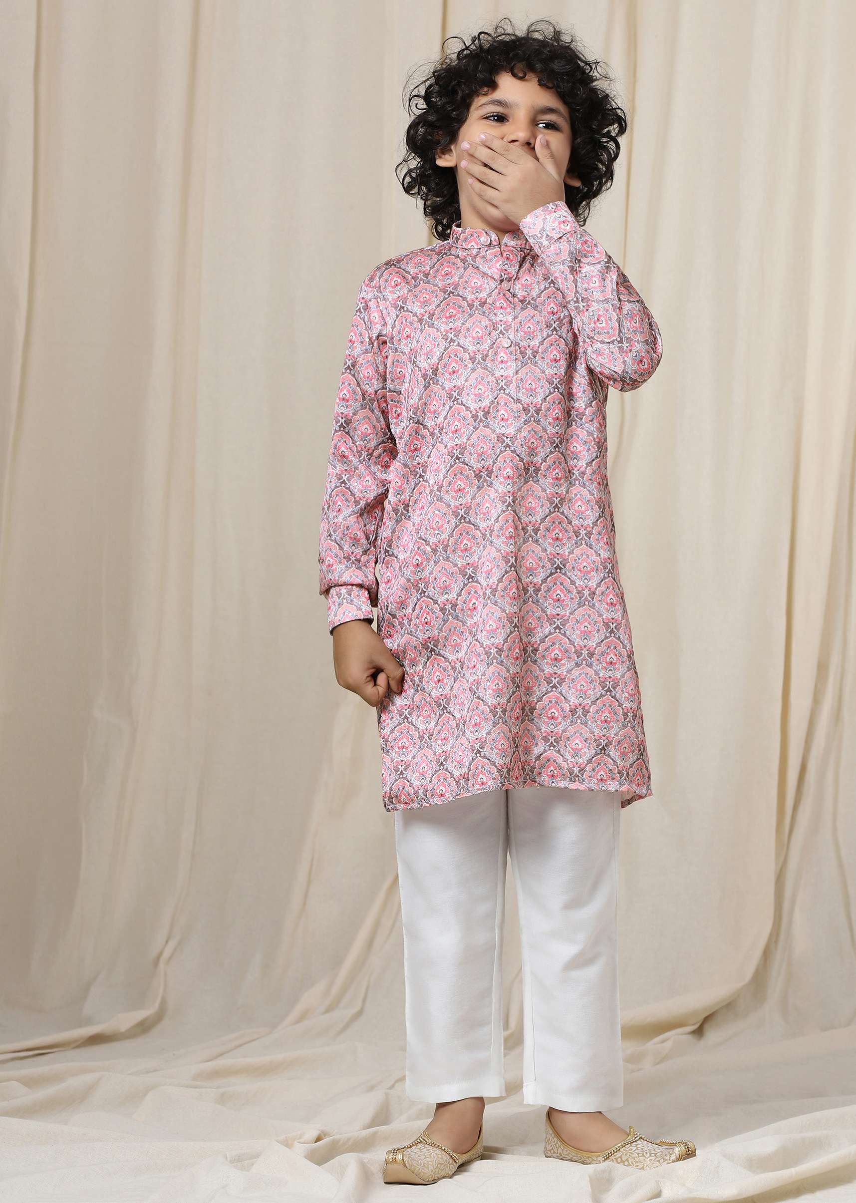 Kalki Coral Cloud Pink Silk Kurta Set With Threadwork For Boys