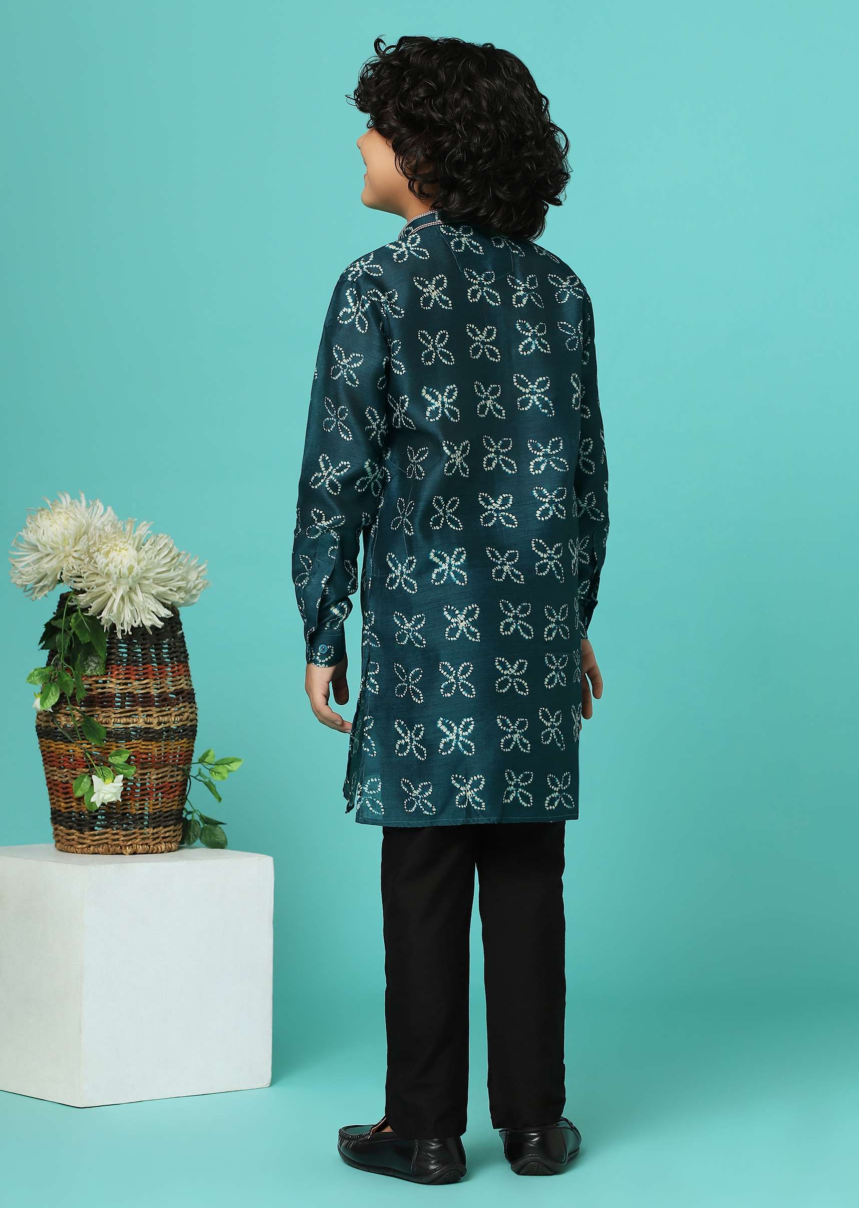 Kalki Deep Green Printed Kurta Set In Tussar Silk For Boys