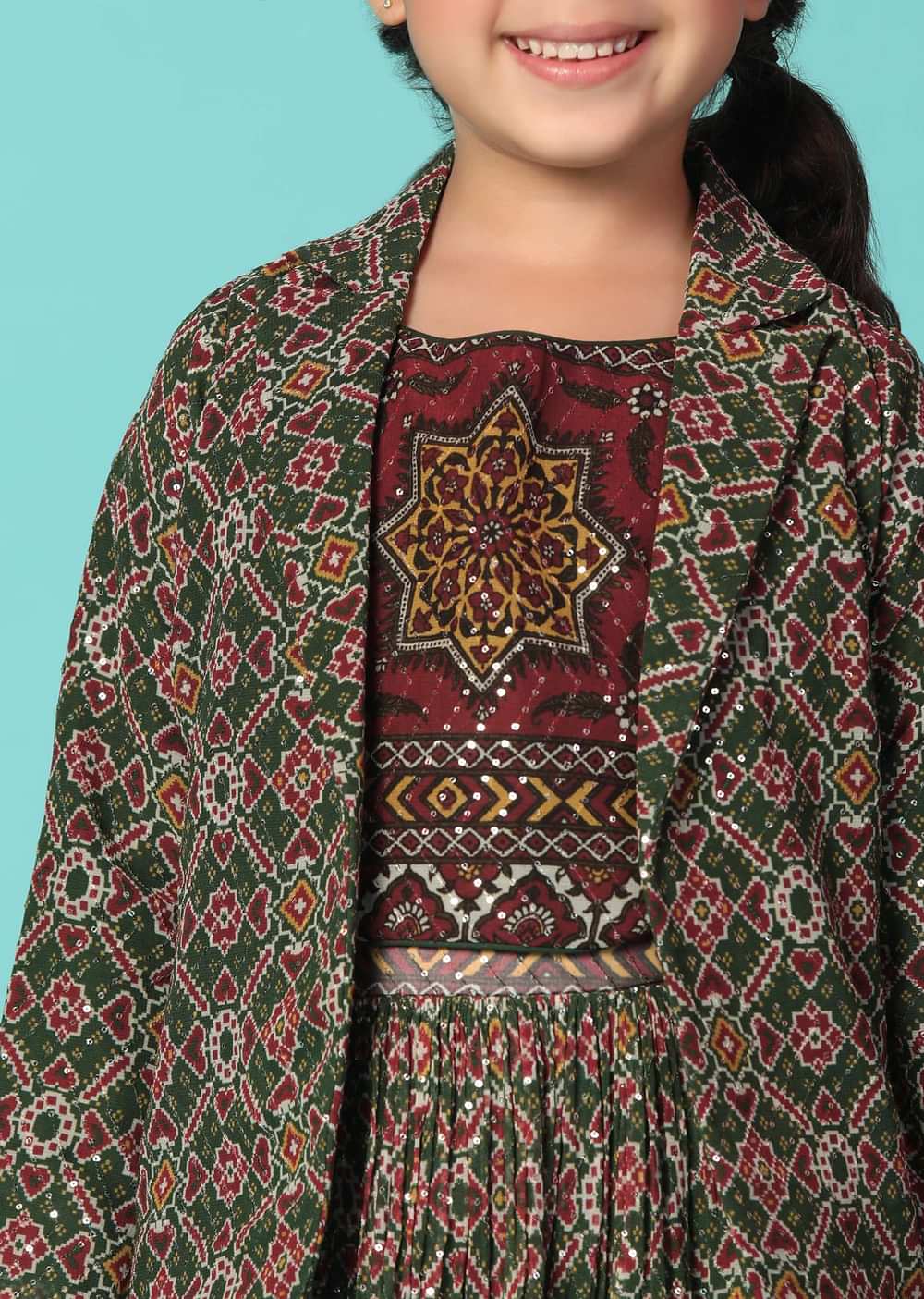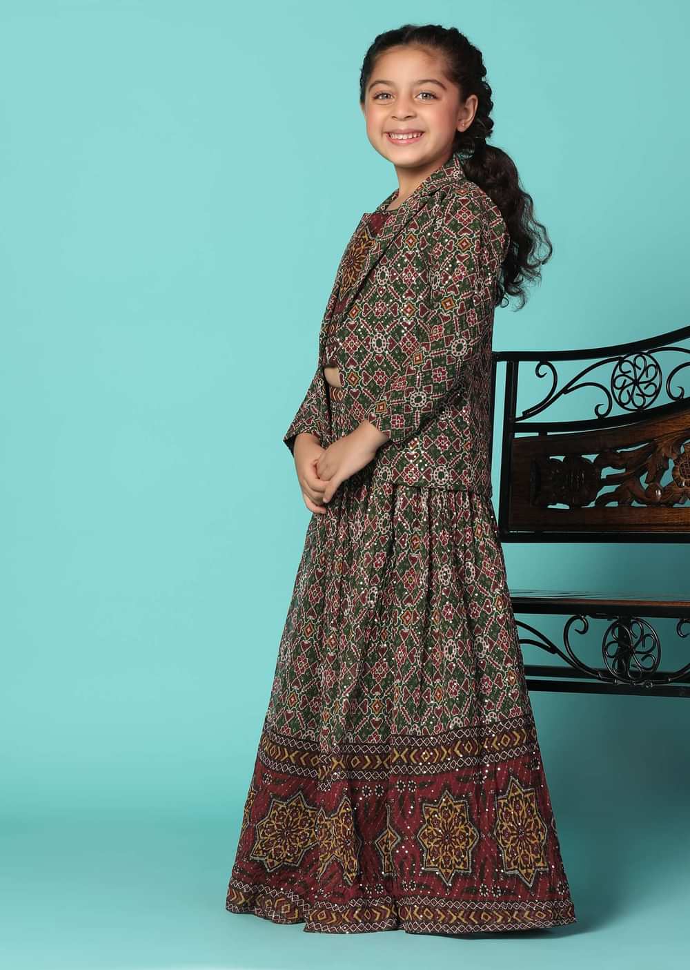 Kalki Deep Green Top And Lehenga Set In Georgette With Sequins Work For Girls