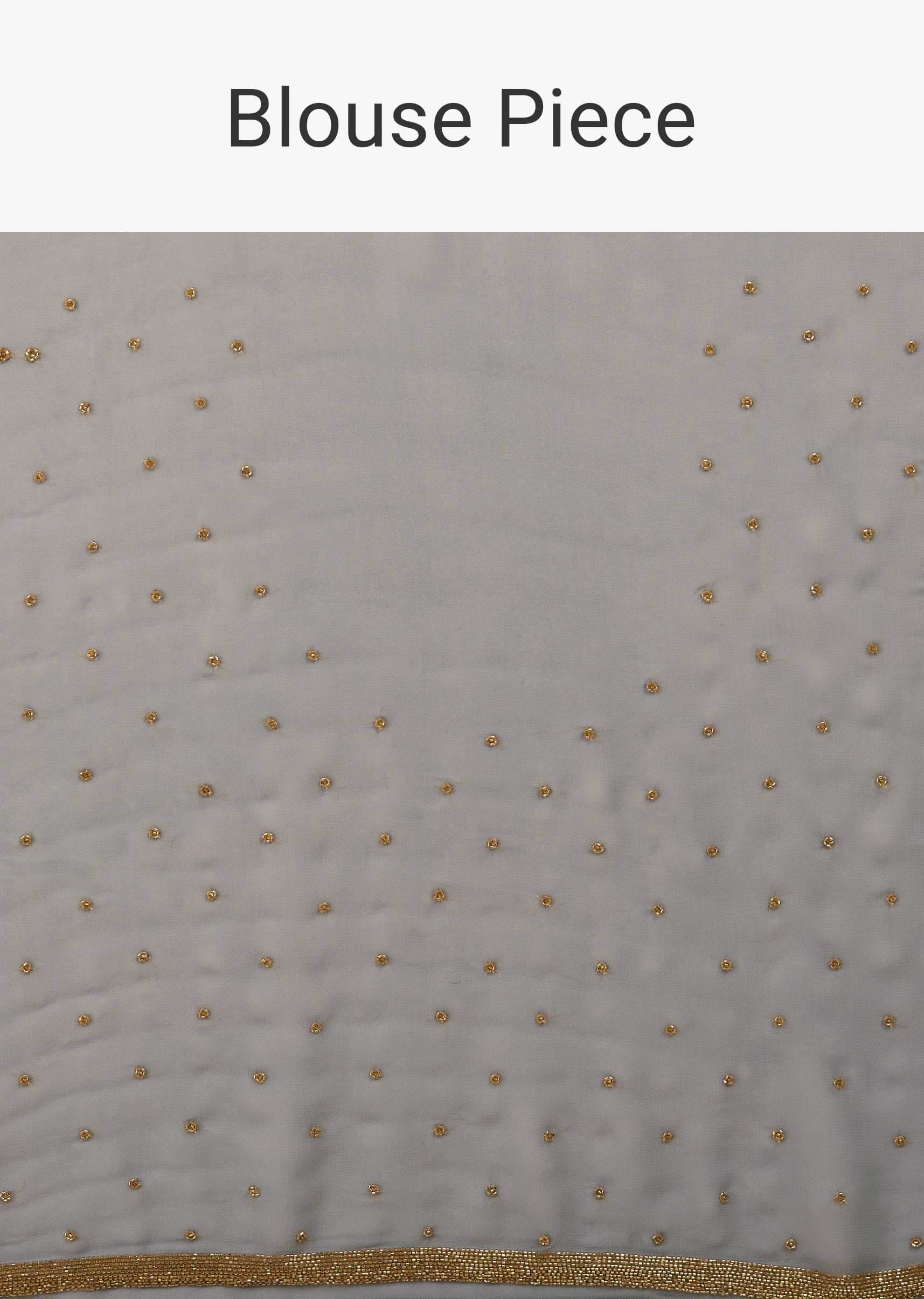 Kalki Festive Quarry Grey Kashmiri Embroidered Saree In Georgette. The saree is fabricated in georgette and embroidered in Kashmiri threadwork with cut dana embroidery and stone embellishments. The lower half of the saree and pallu are heavily embellished with floral thread butti work. It is further enhanced with cut dana detailing all over. It comes with a matching unstitched georgette blouse with cut dana butti all over. NOTE - The blouse worn by the model is designed by our team for styling purposes. You can get your hands on designer blouses by clicking on the blouse link. You can also get matching shapewear as our stylists suggested for an elegant look. Awarded as the Most Trusted Brand, we're delivering styles you love, just as promised.