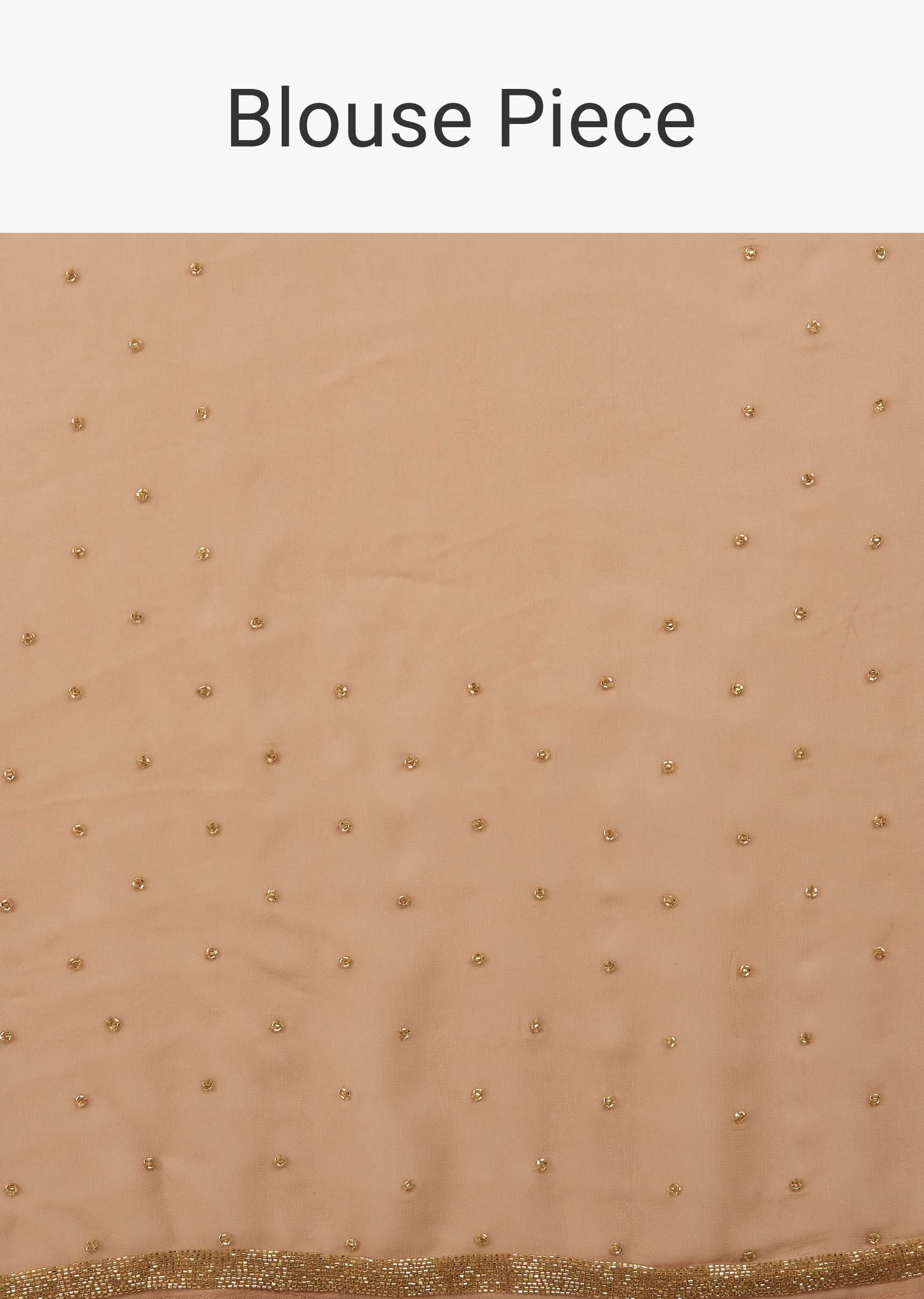 Kalki Festive Toasted Almond Beige Kashmiri Embroidered Saree In Georgette. The saree is fabricated in georgette and embroidered in Kashmiri threadwork with cut dana embroidery and stone embellishments. The lower half of the saree and pallu are heavily embellished with floral thread jaal work. It is further enhanced with cut dana detailing all over. It comes with a matching unstitched georgette blouse with cut dana butti all over. NOTE - The blouse worn by the model is designed by our team for styling purposes. You can get your hands on designer blouses by clicking on the blouse link. You can also get matching shapewear as our stylists suggested for an elegant look. Awarded as the Most Trusted Brand, we're delivering styles you love, just as promised.
