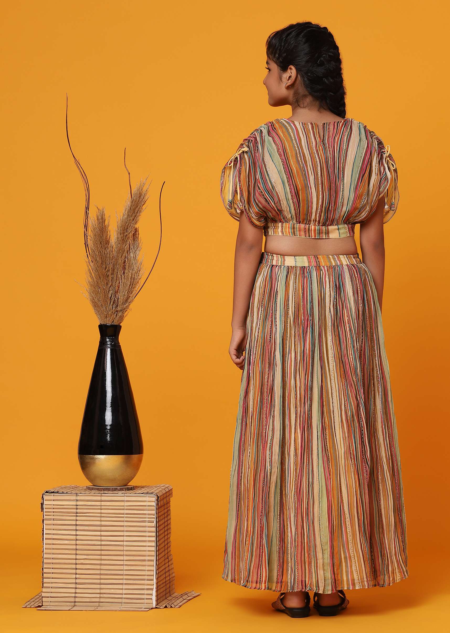 Kalki Multicolor Printed Top And lehenga Set In Georgette For Girls
