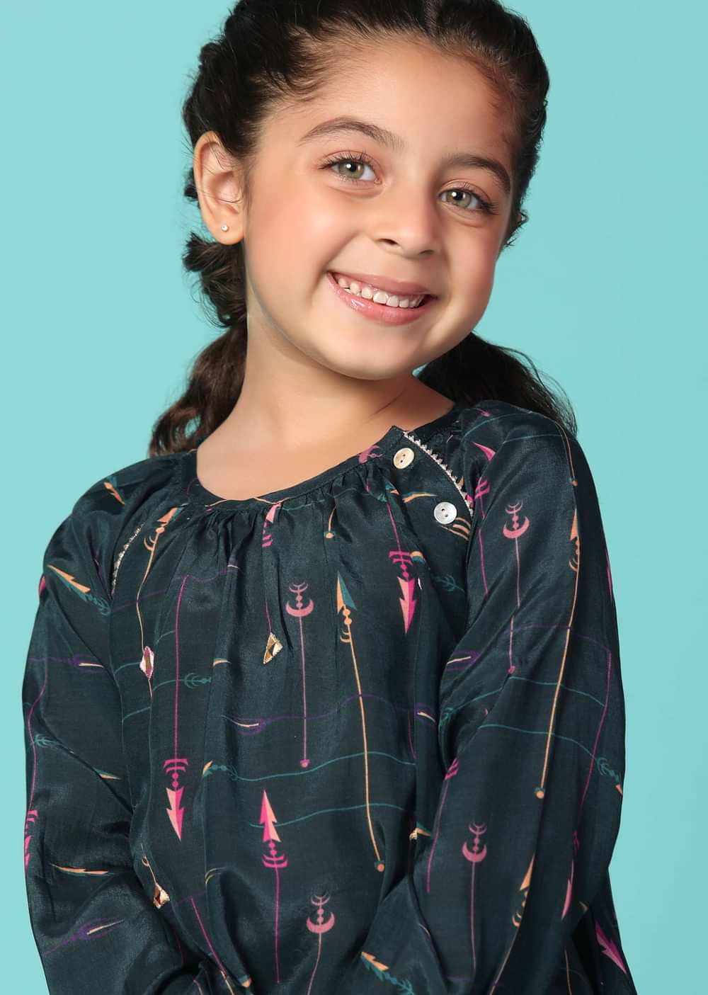 Enhance your little one's style with our stunning kurta and palazzo set.The set is adorned with a delightful digital print and mirror work. The kurta features full sleeves and a... More Product Details