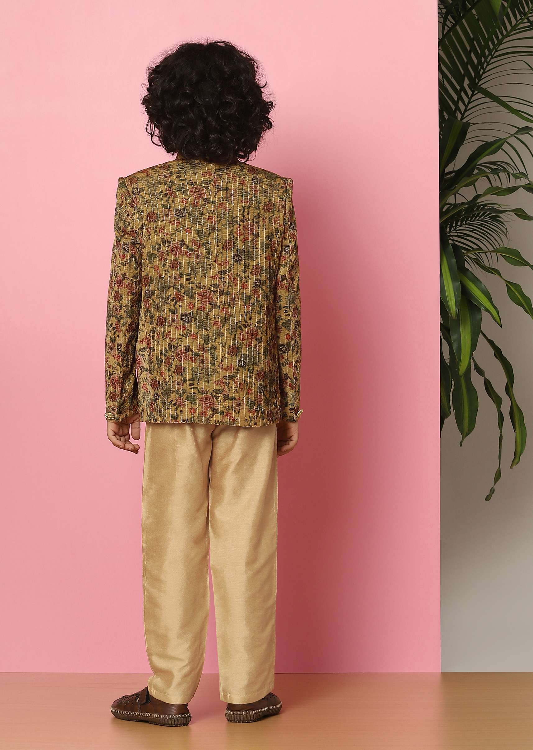 Kalki Yellow Velvet Sherwani Set With Sequins And Floral Print For Boys
