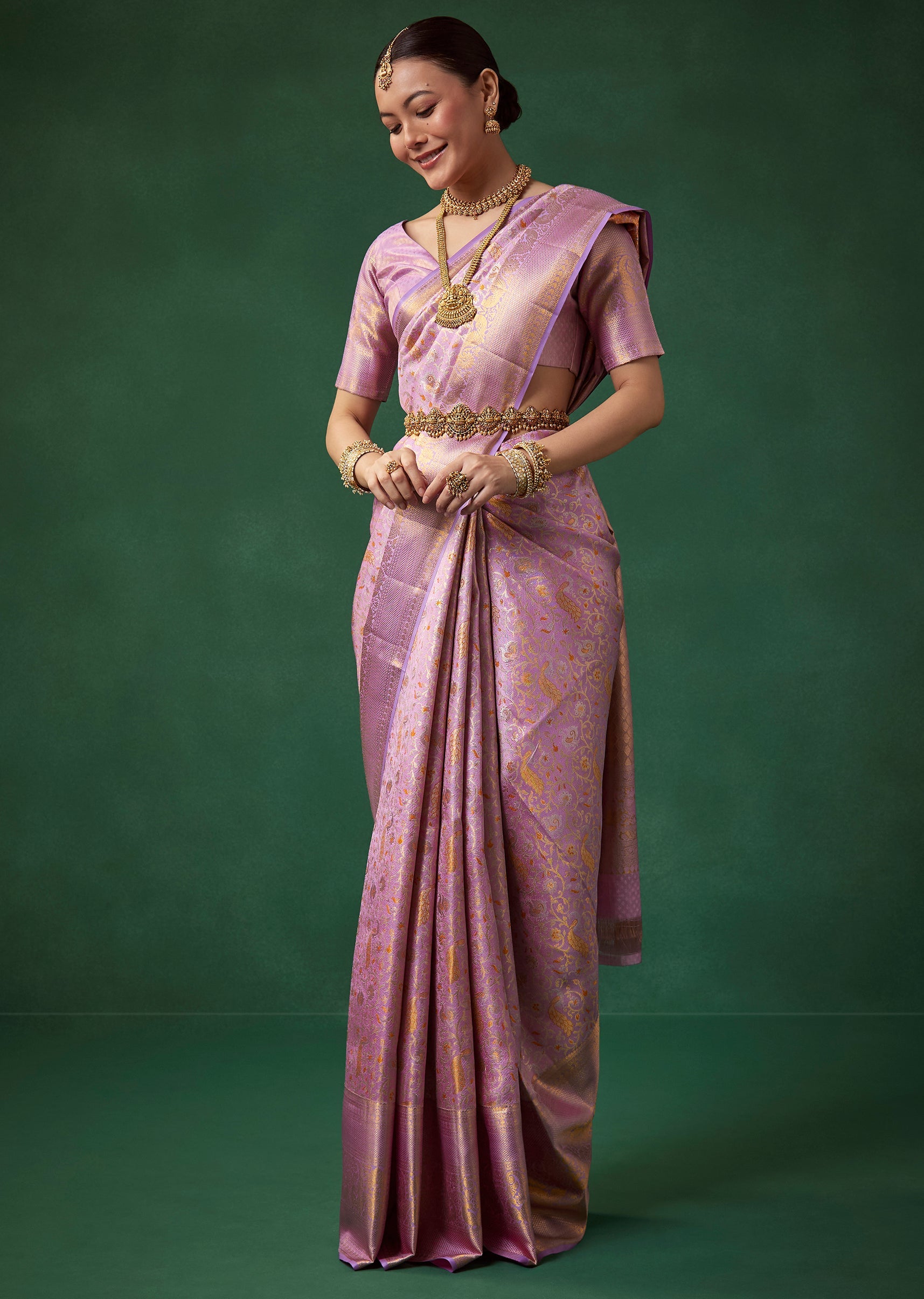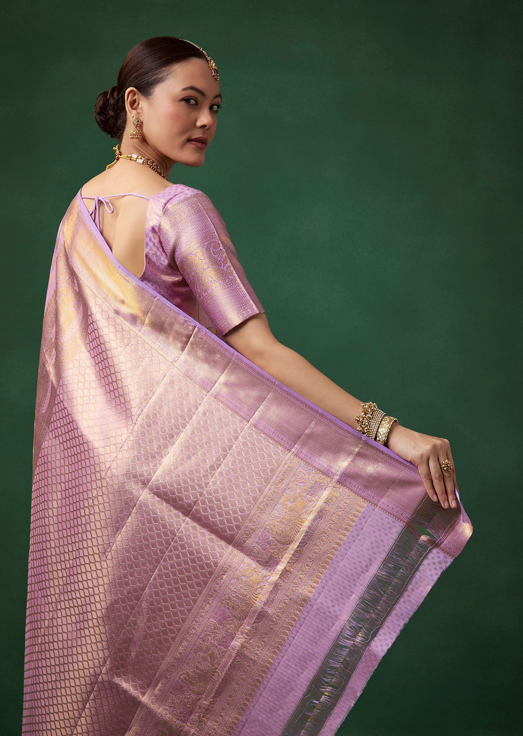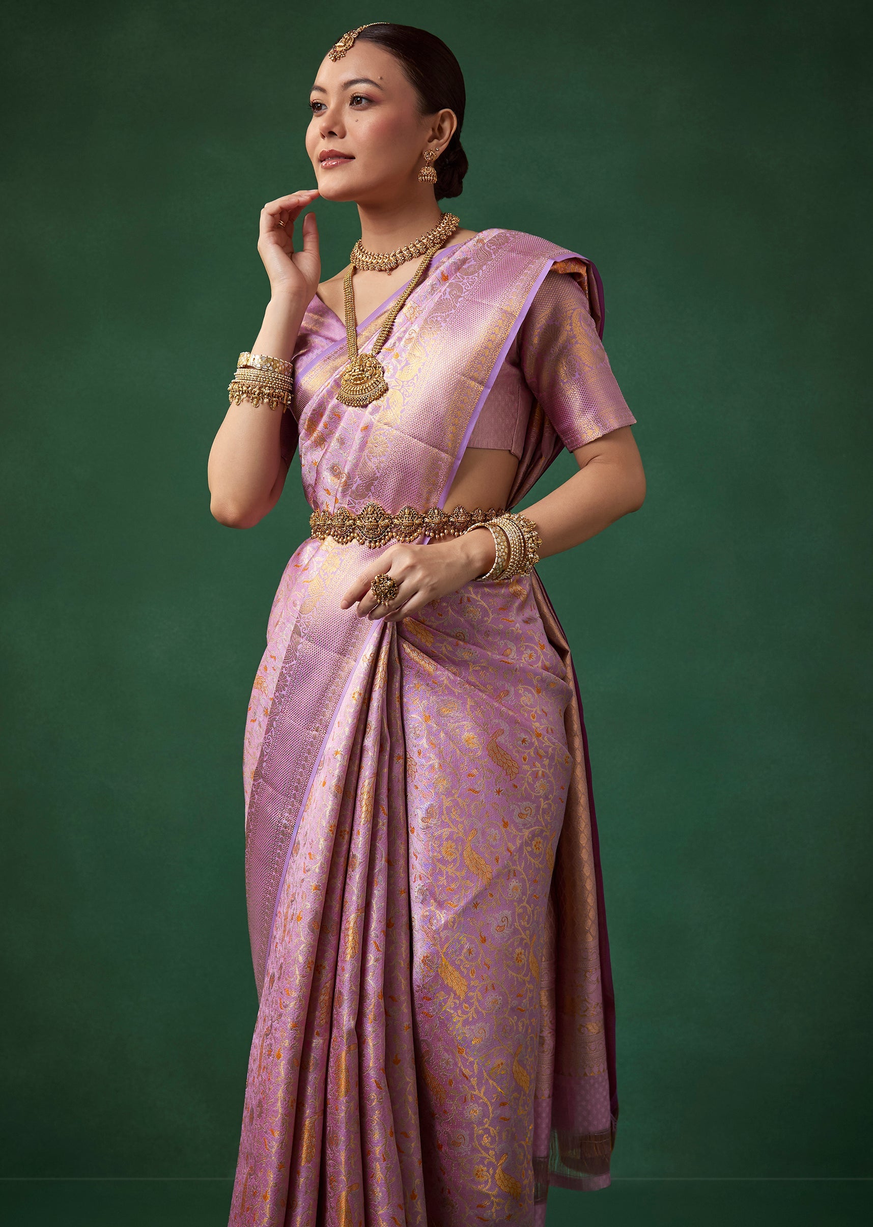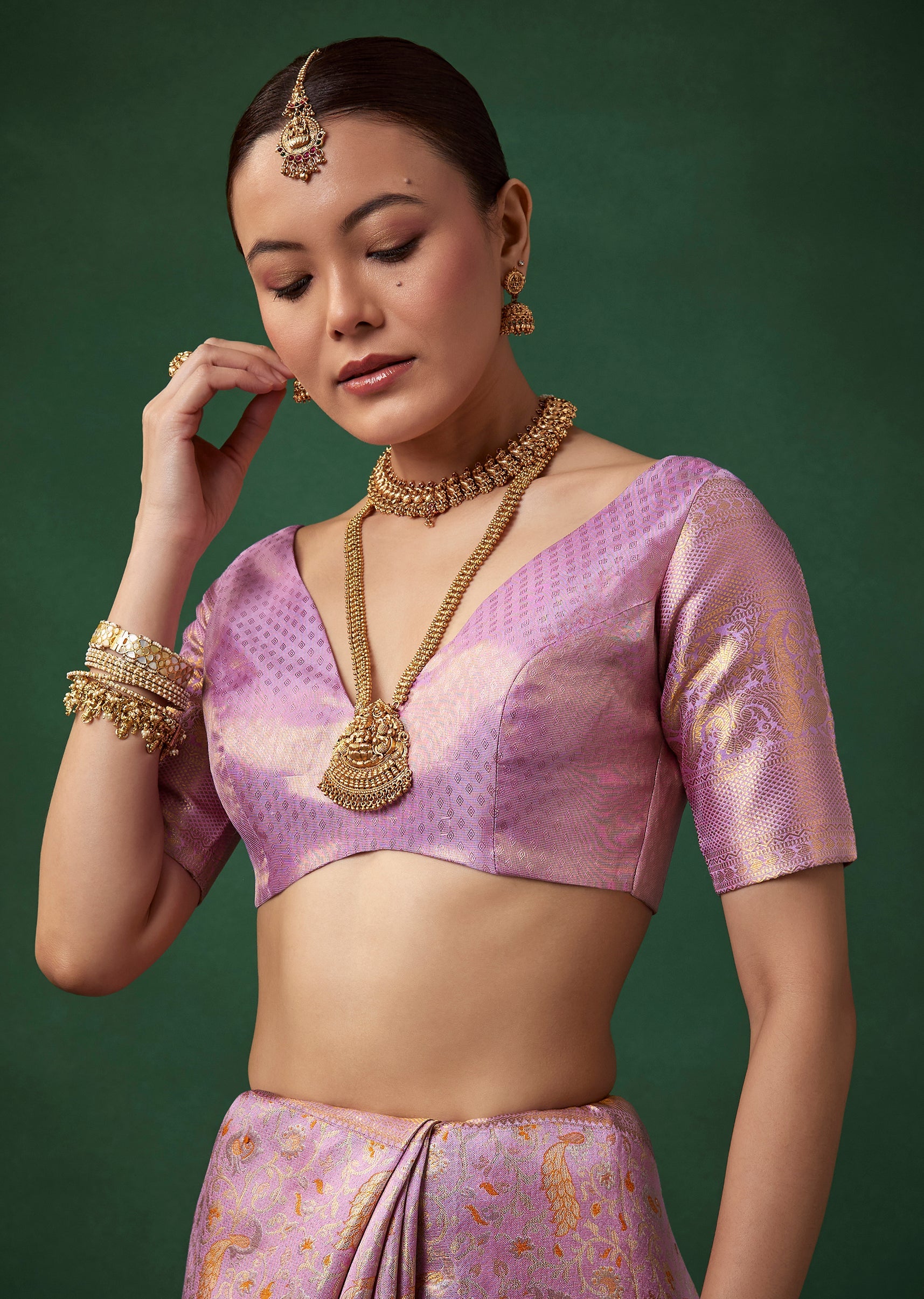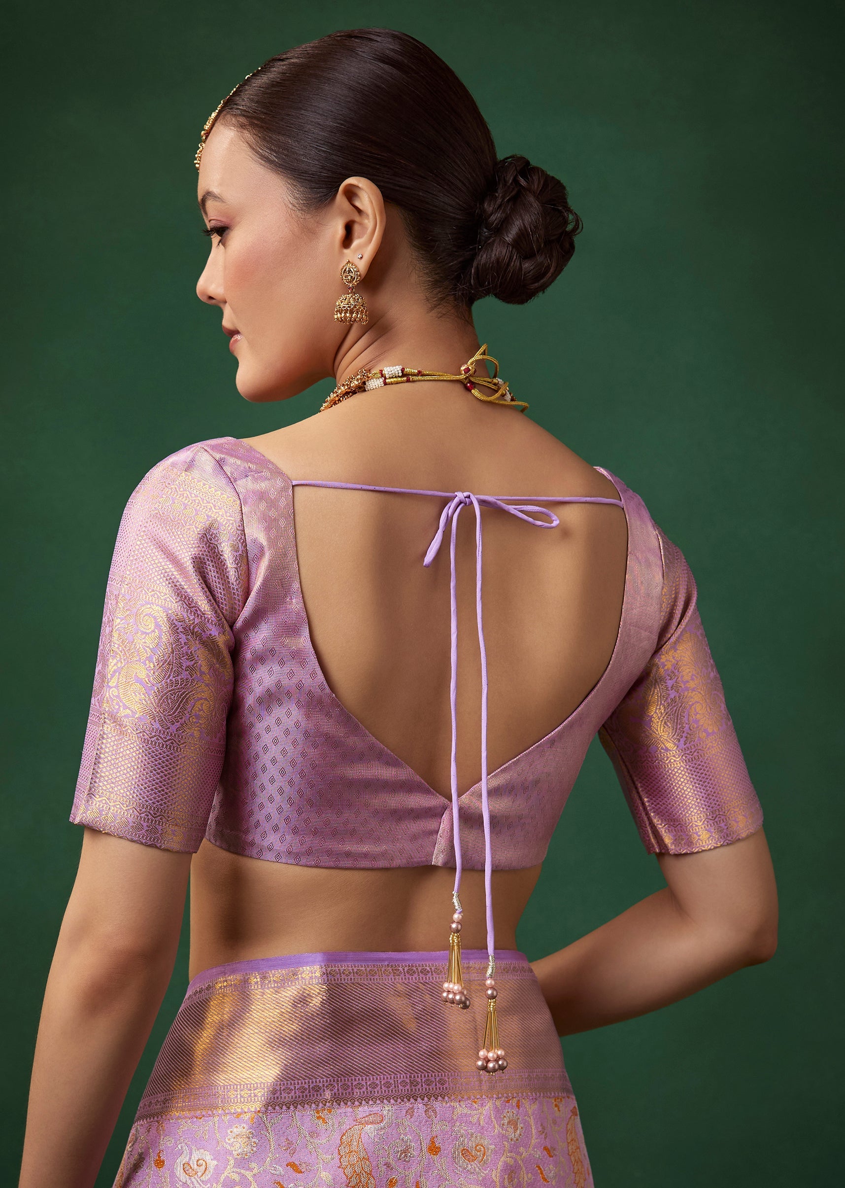 Lavender Banarasi Brocade Saree with Unstitched Blouse
