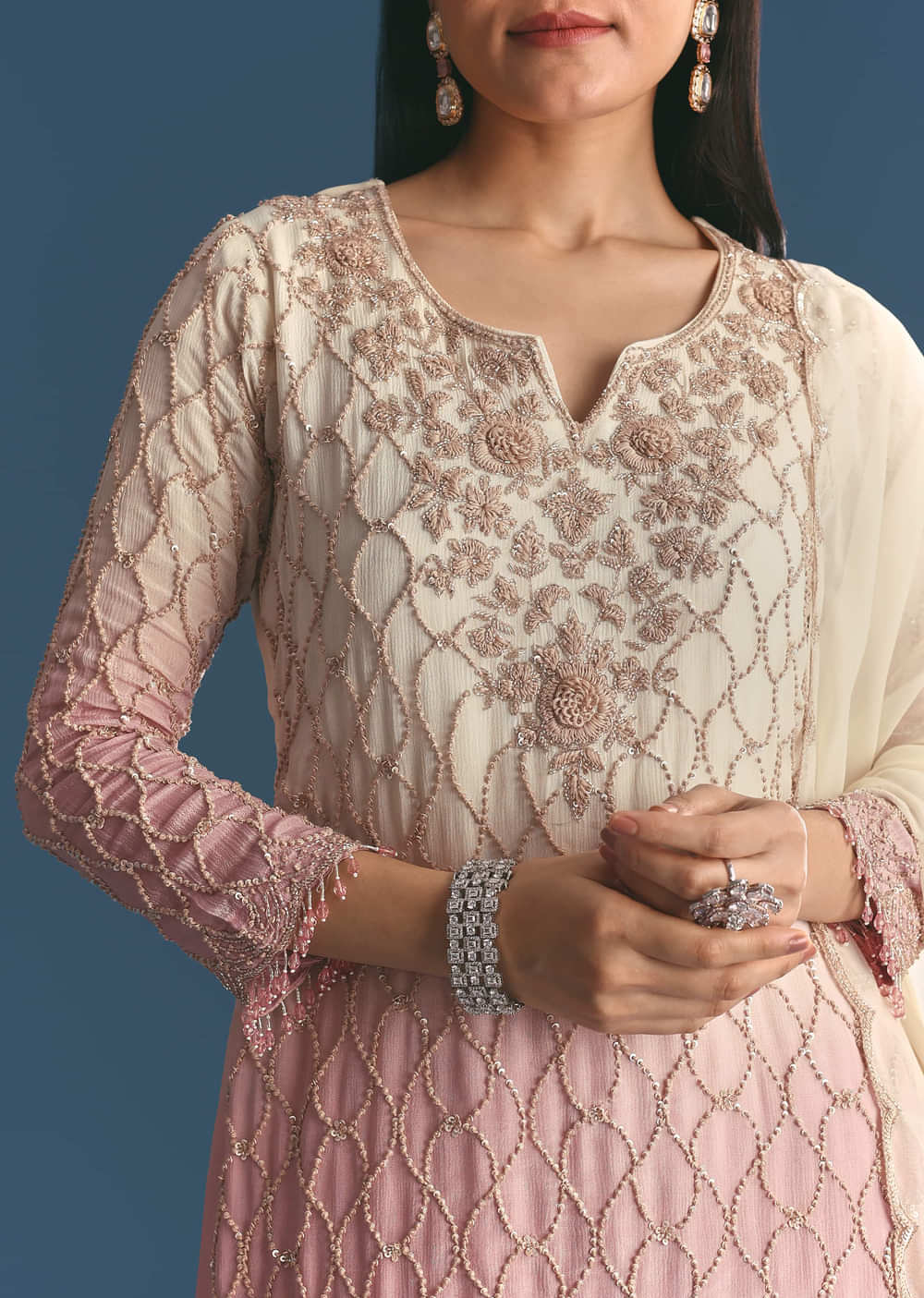 Lavender Chinon Ombre Kurta Palazzo Suit With Sequins Thread Work