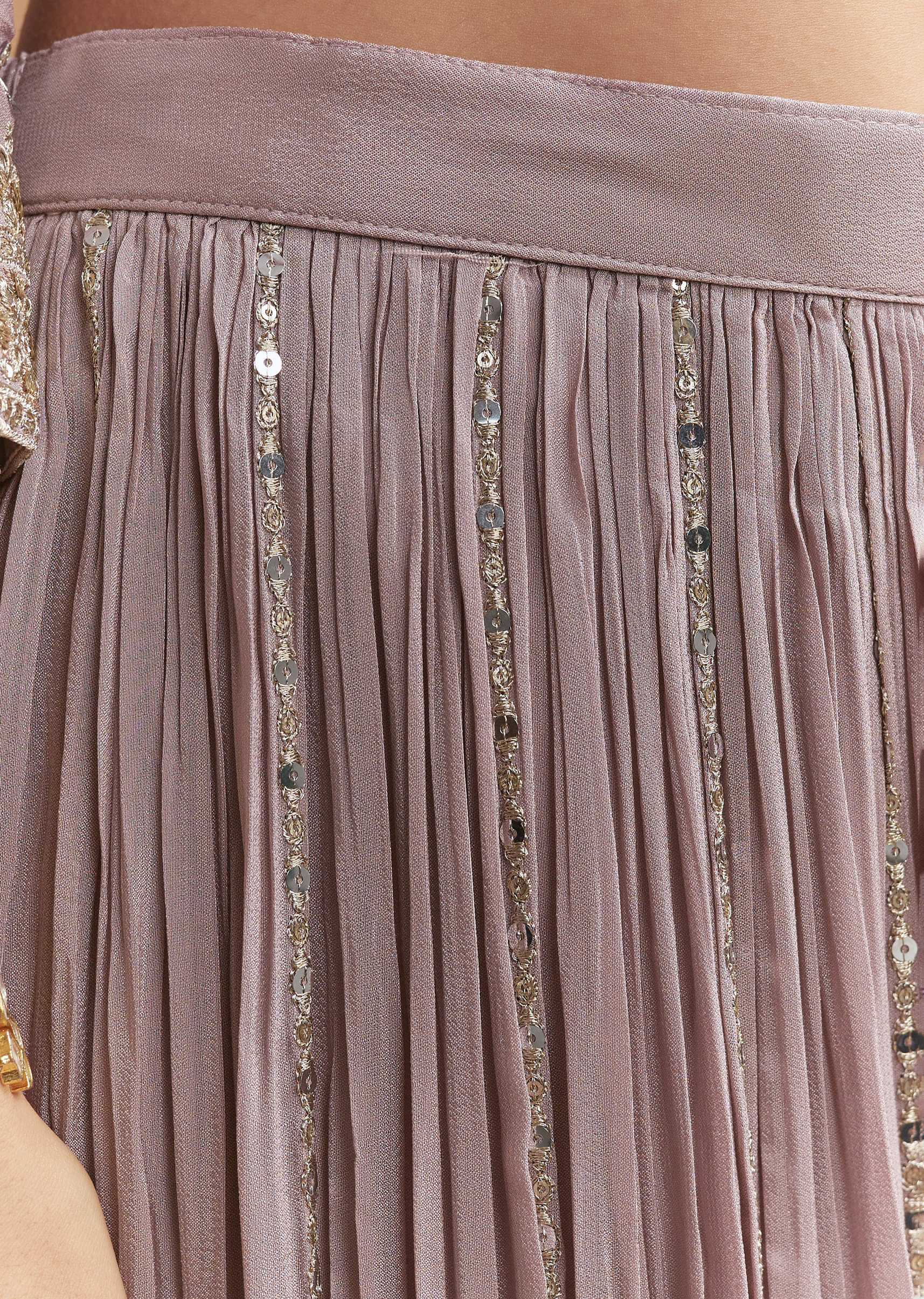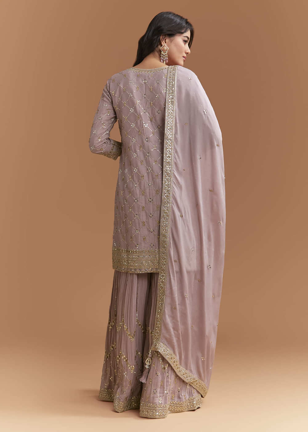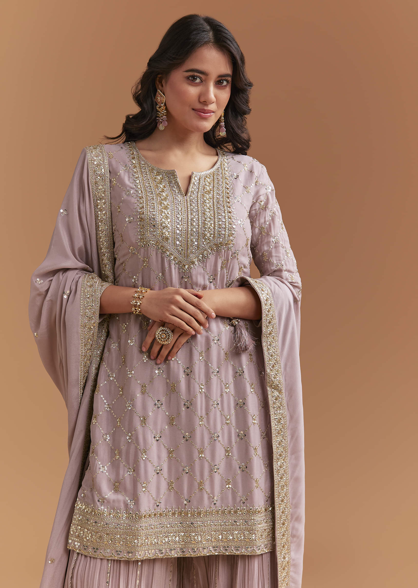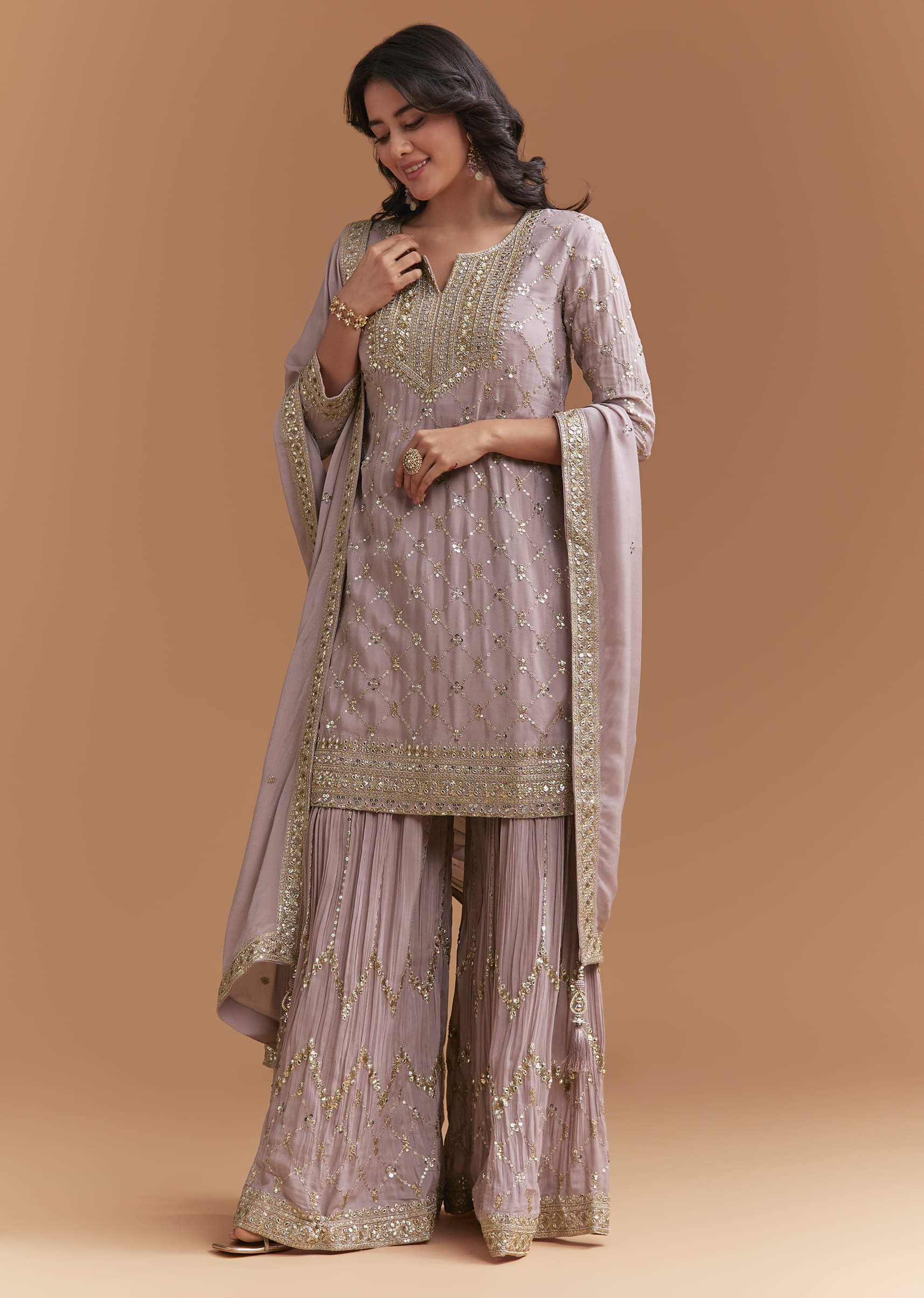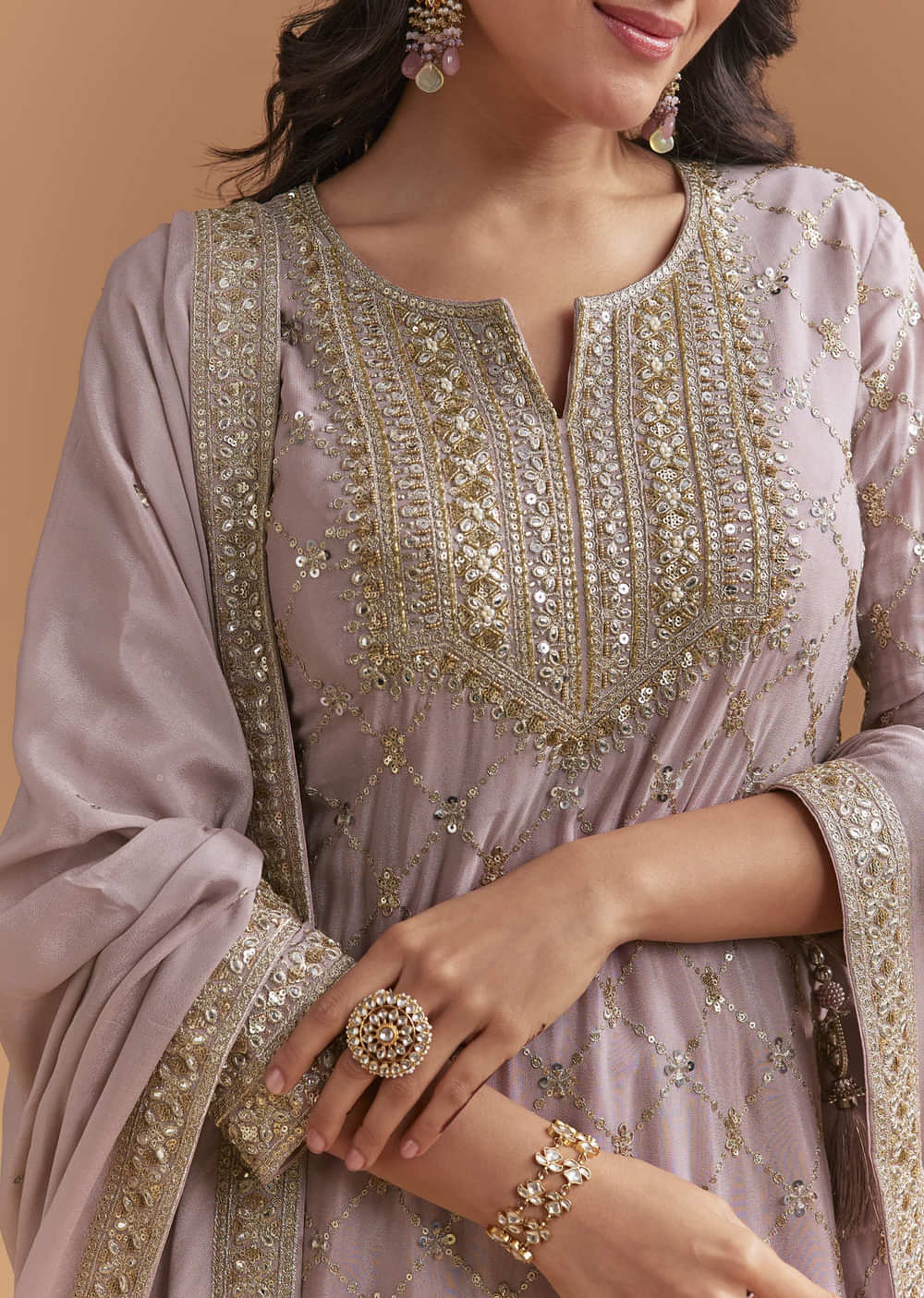 Lavender Chinon Palazzo Suit With Intricate Sequins Work