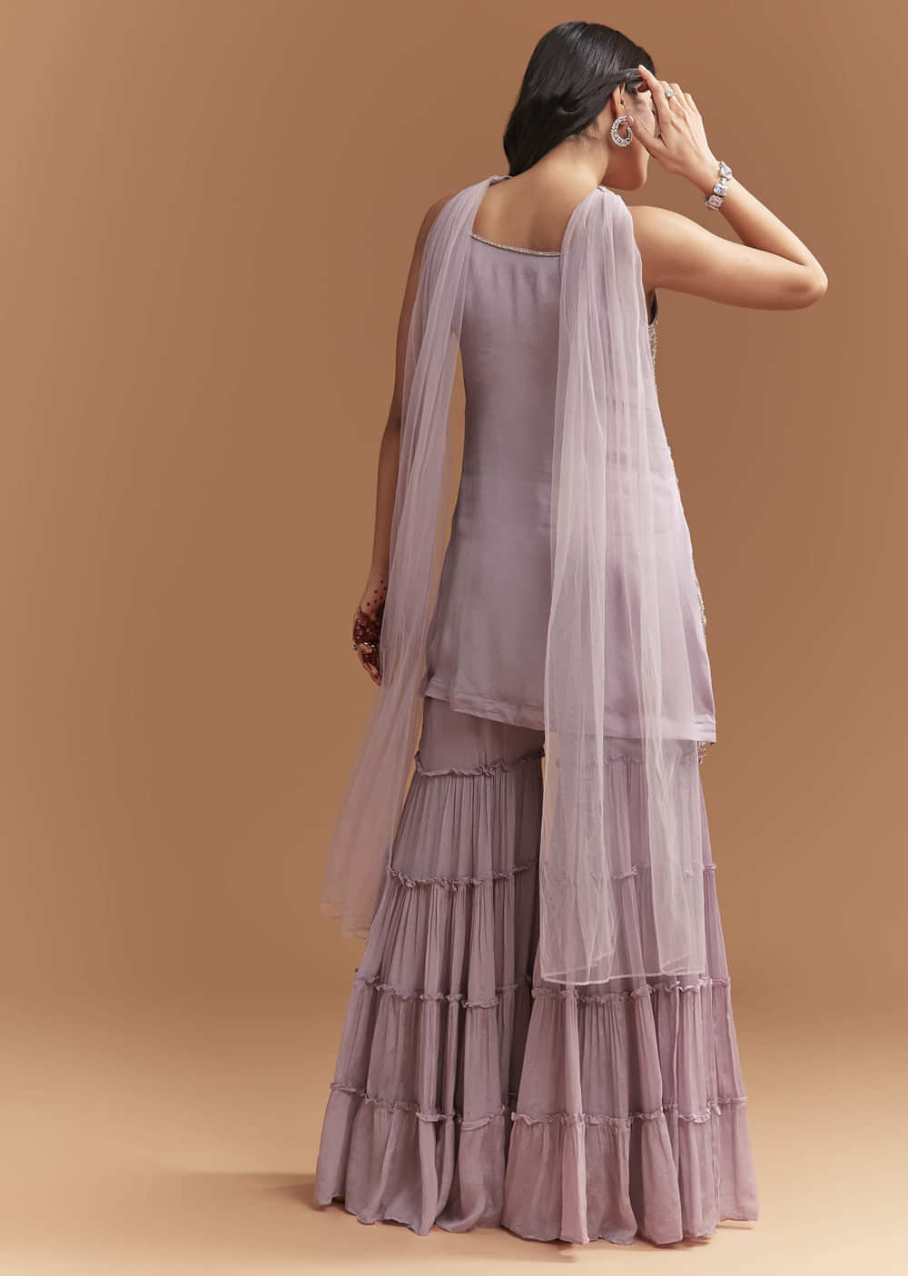 Lavender Chinon Sharara Suit With Cutdana And Sequins Work