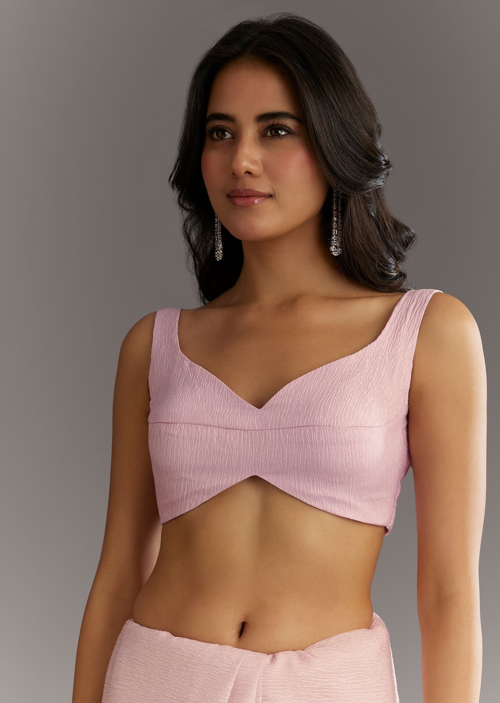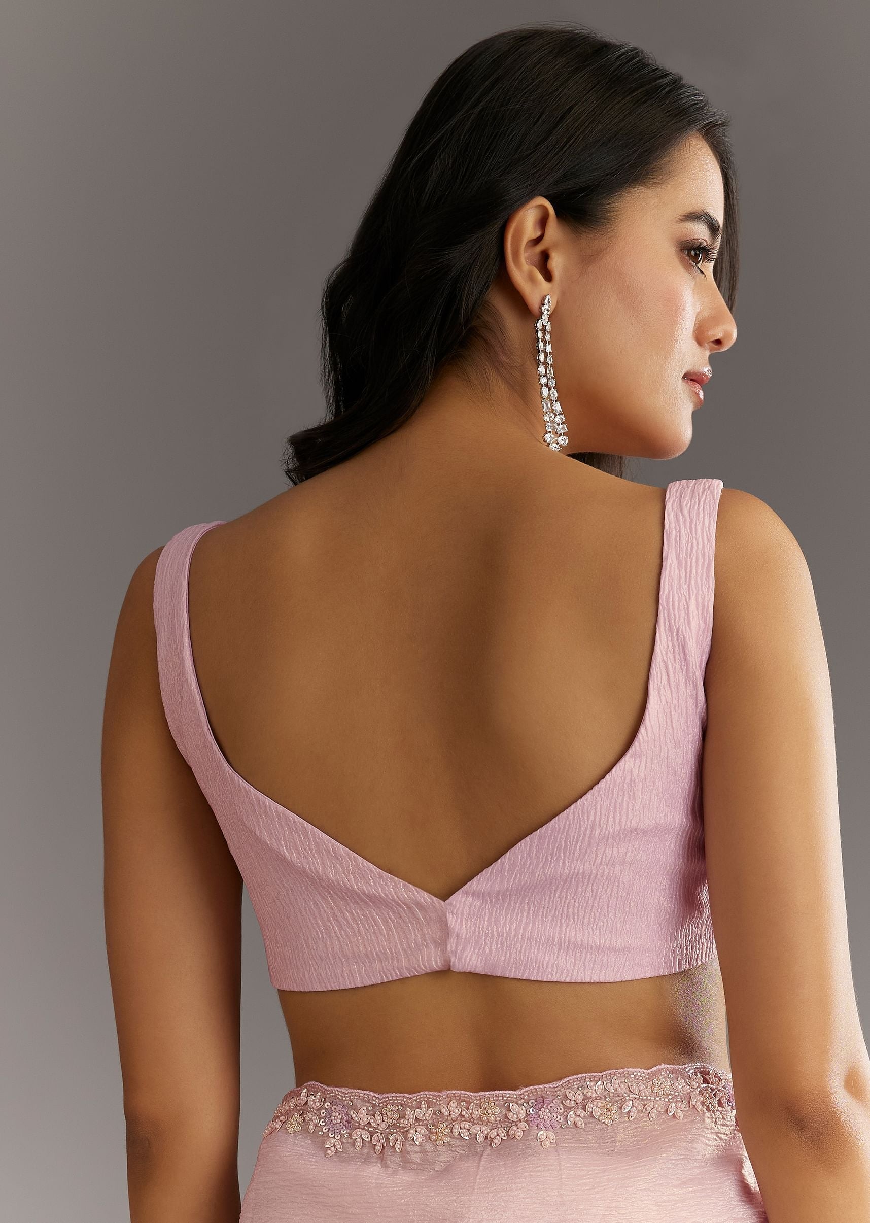A lavender cloud dipped in stardust this glossy crushed tissue saree twinkles with moti sequins and cutdana—magic you can wear.Awarded as the Most Trusted Brand we're delivering styles you love just as promised.