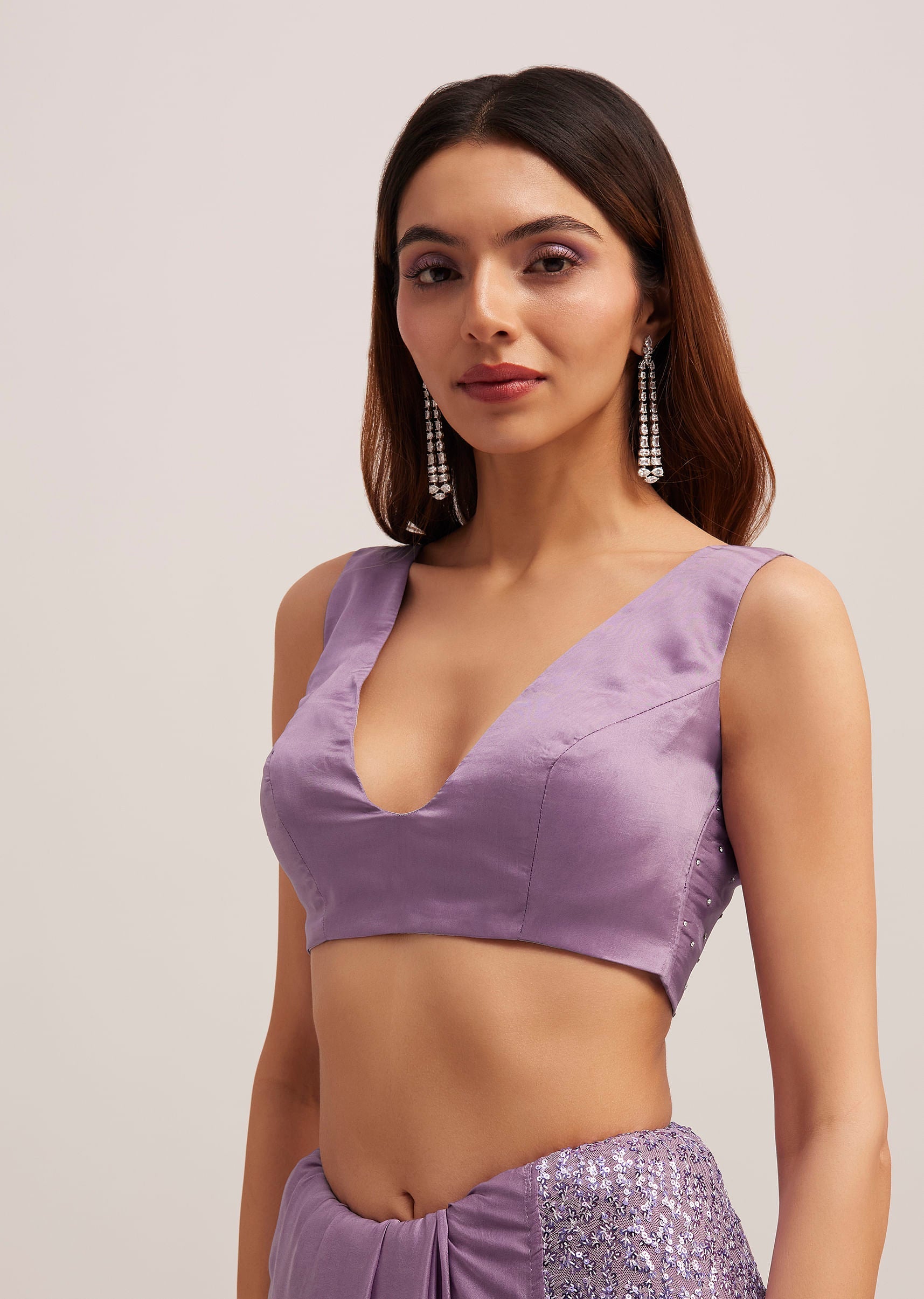 Turn heads with this lavender half n half sequins embroidered saree, designed to add sparkle and elegance to your festive wardrobe. The intricate sequins embroidery creates a captivating shimmer, making it a stunning choice for receptions and cocktail parties. The soft drape ensures effortless styling while maintaining a graceful silhouette. Awarded as the Most Trusted Brand, we're delivering styles you love, just as promised.