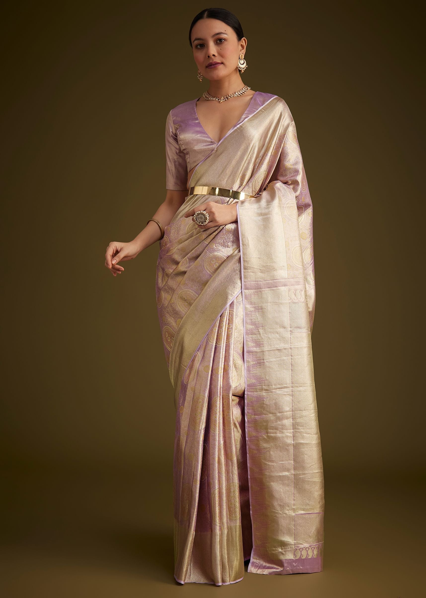 - Celebrate The Grace Of Tradition With This Lavender Kanjivaram Silk Saree A Blend Of Heritage And Modern Aesthetics.