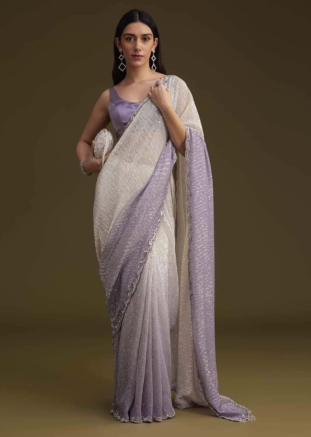 - Exude sophistication and elegance in this lavender ombre sequins saree, featuring a beautiful gradient from soft lavender to a deeper hue.