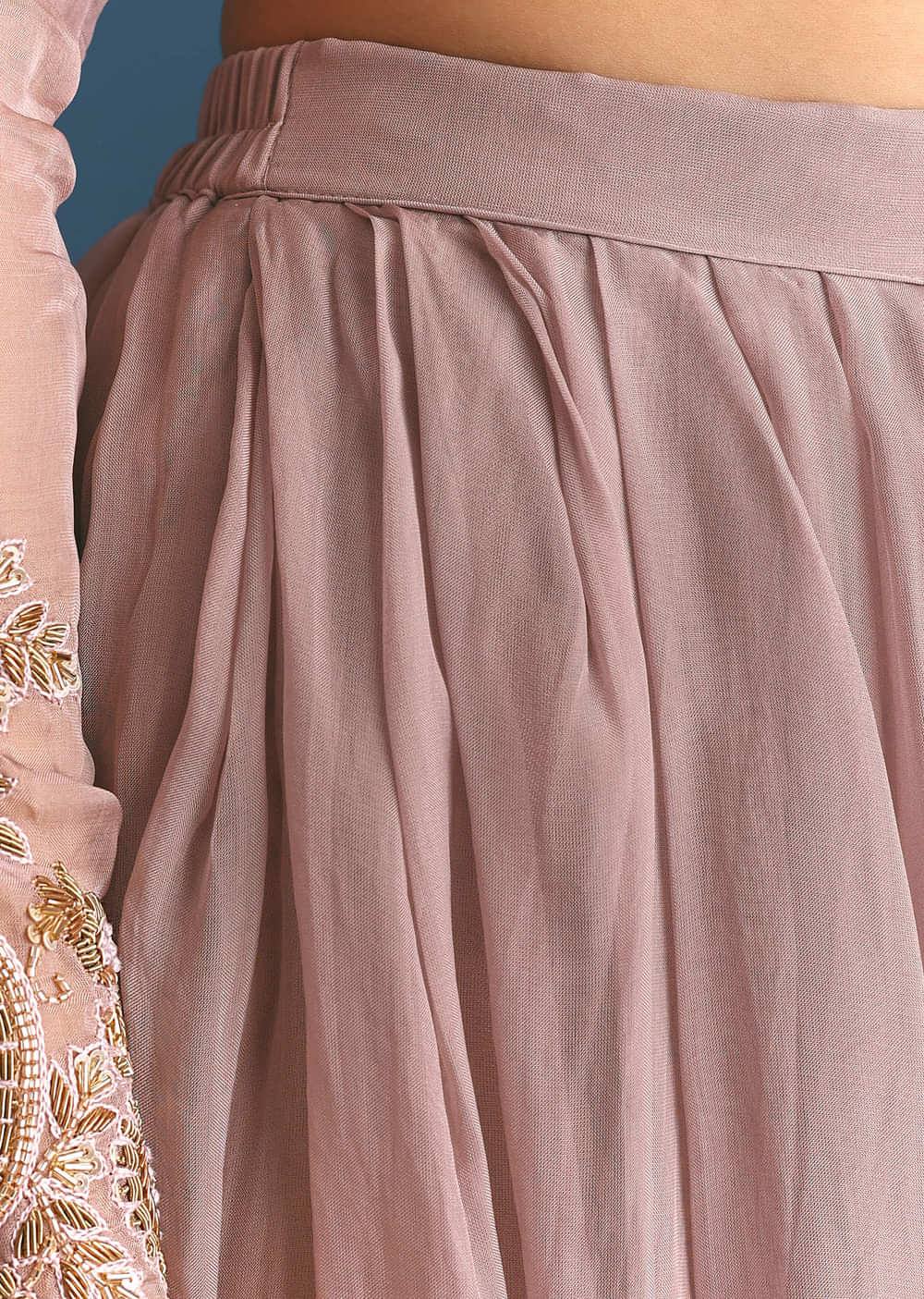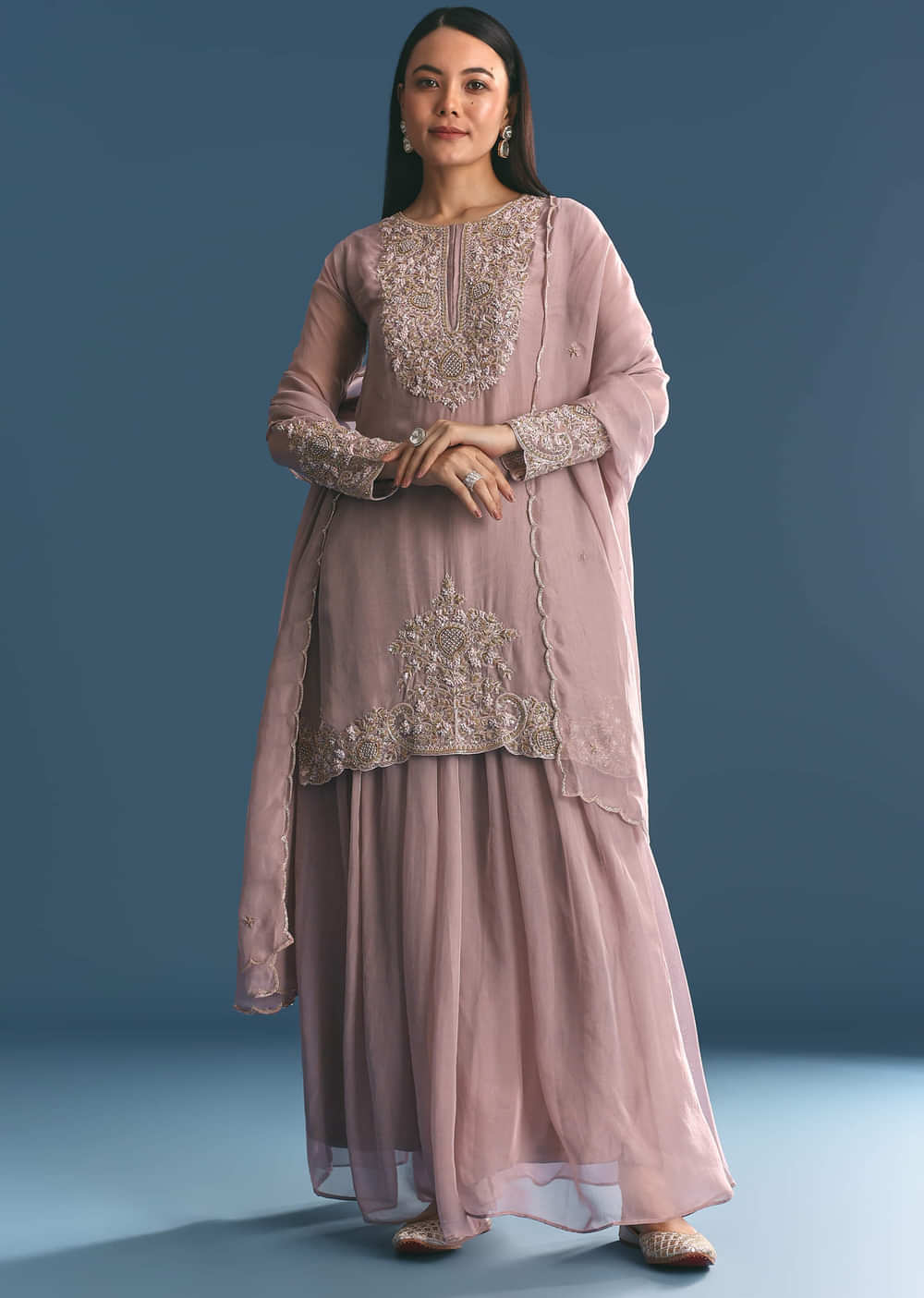 Lavender Organza Kurta Palazzo Suit With Zardosi Work
