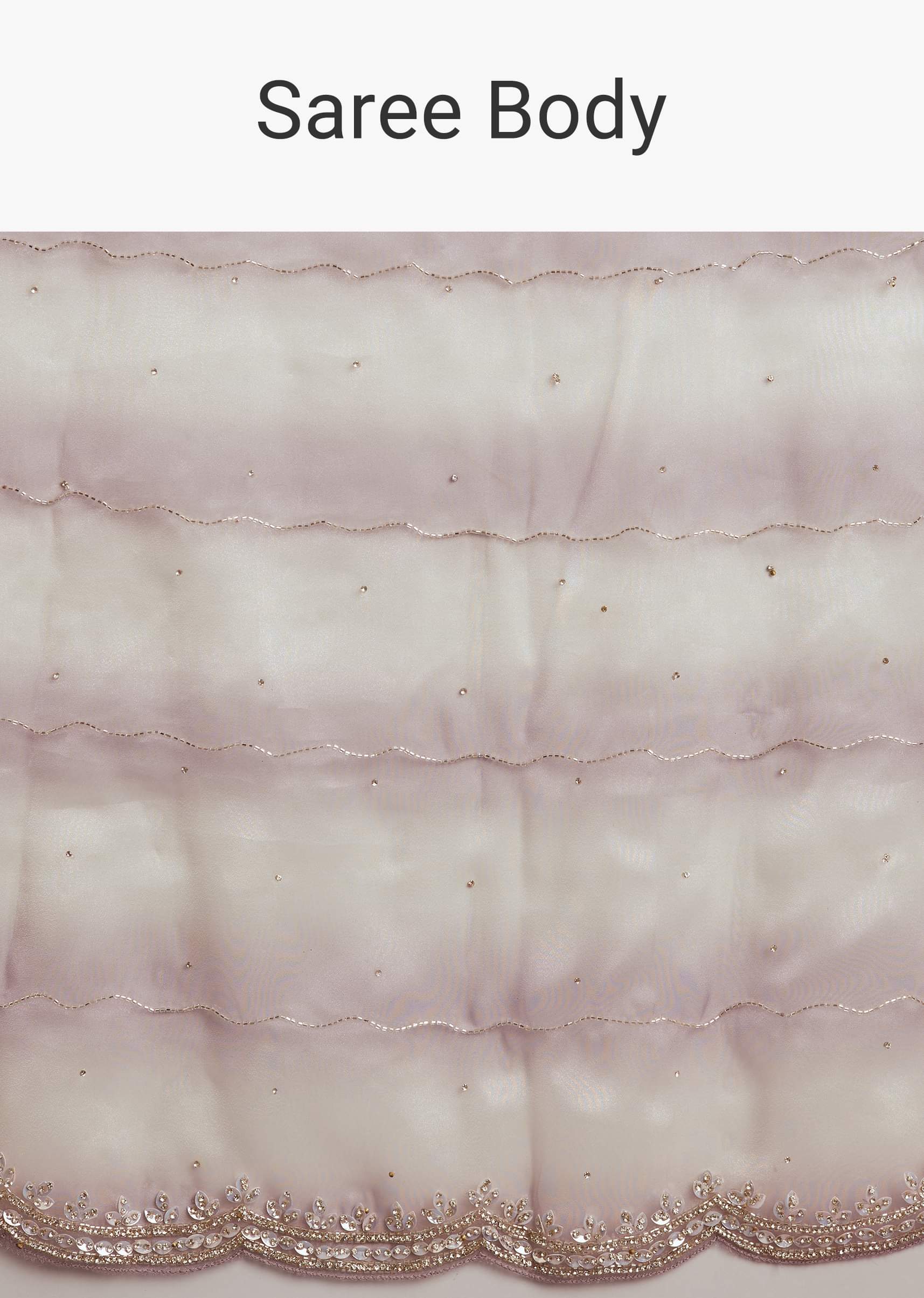 Lavender Shaded Glass Tissue Stone Embellished Saree With Cutdana And Beads