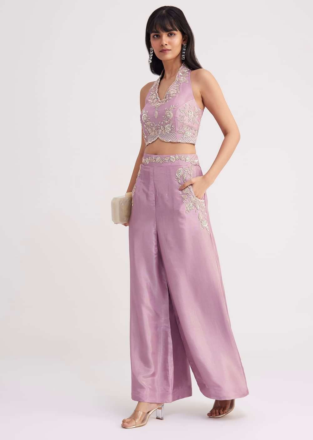 Lavender Tissue Crop Top And Palazzo Set