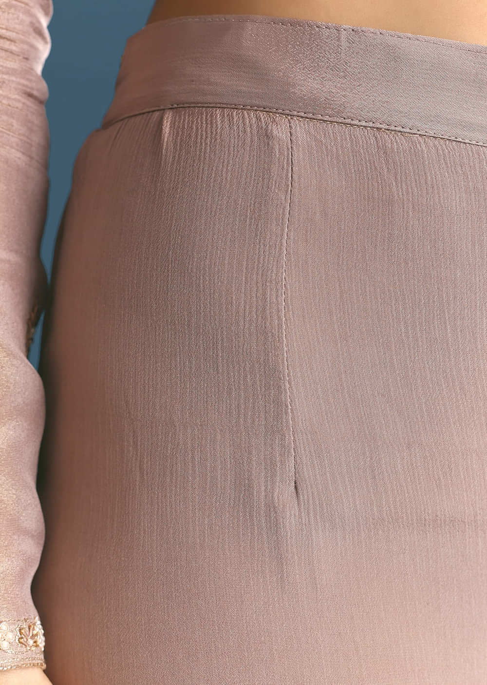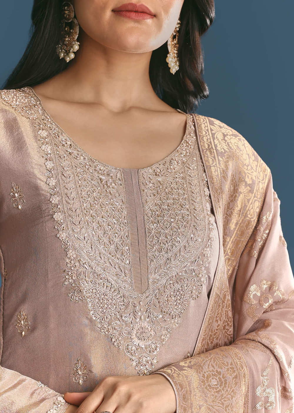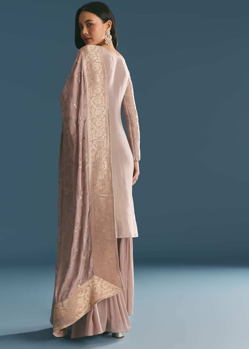 Lavender Tissue Kurta Sharara Suit With Moti And Cutdana Work
