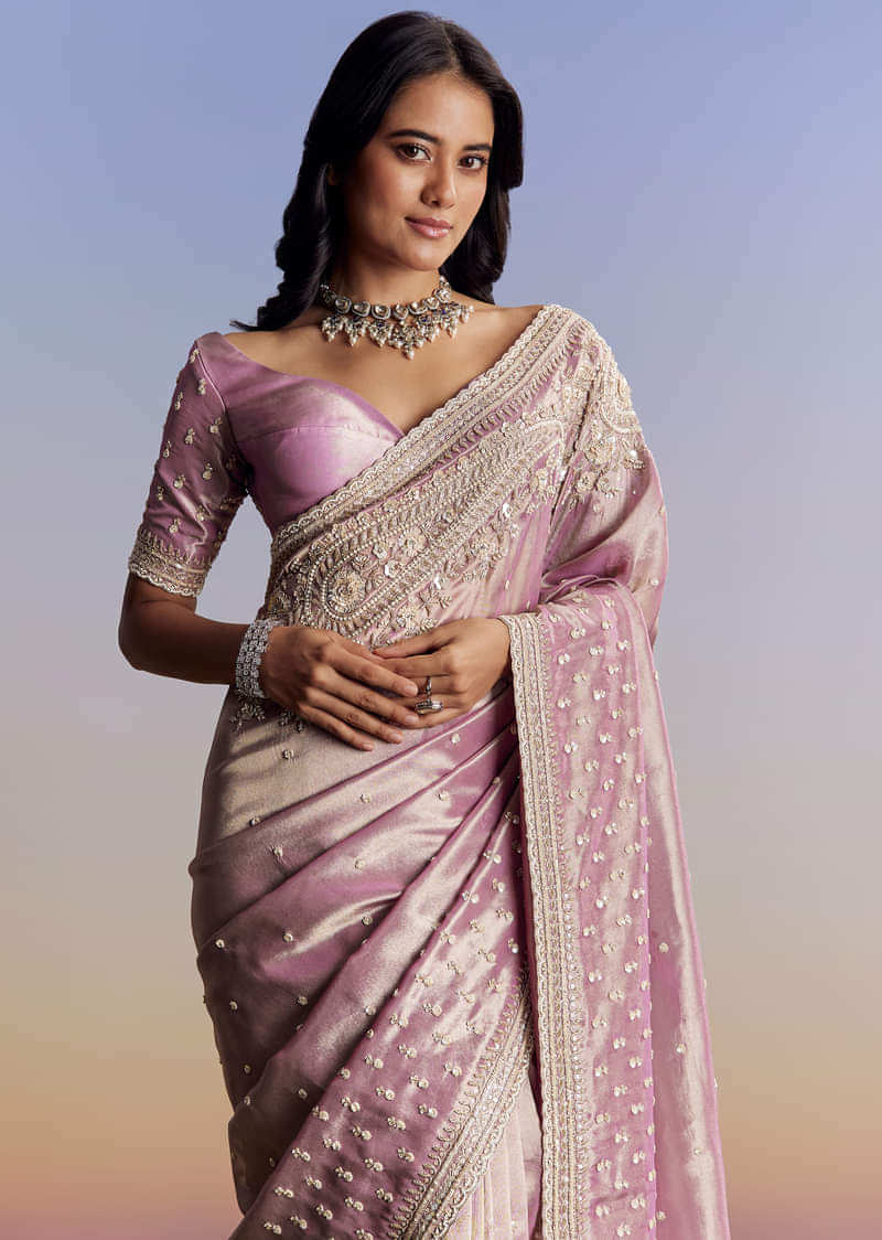 Lavender Tissue Saree With Cutdana Sequin And Bead Embroidery