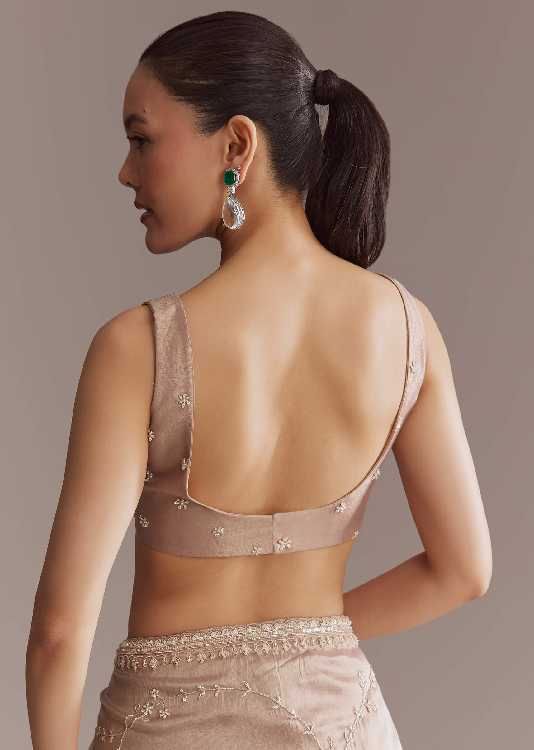 Lavender tones with hand embroidery make this tissue saree radiant and luxurious. The saree and its border features jaal work that sparkles with zardosi, sequins, beads, cutdana, and emerald stones,... More Product Details