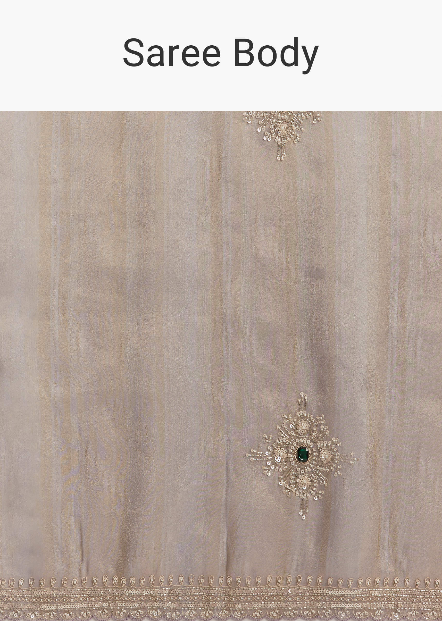Lavender Tissue Saree With Zardosi And Emerald Stone Embroidery