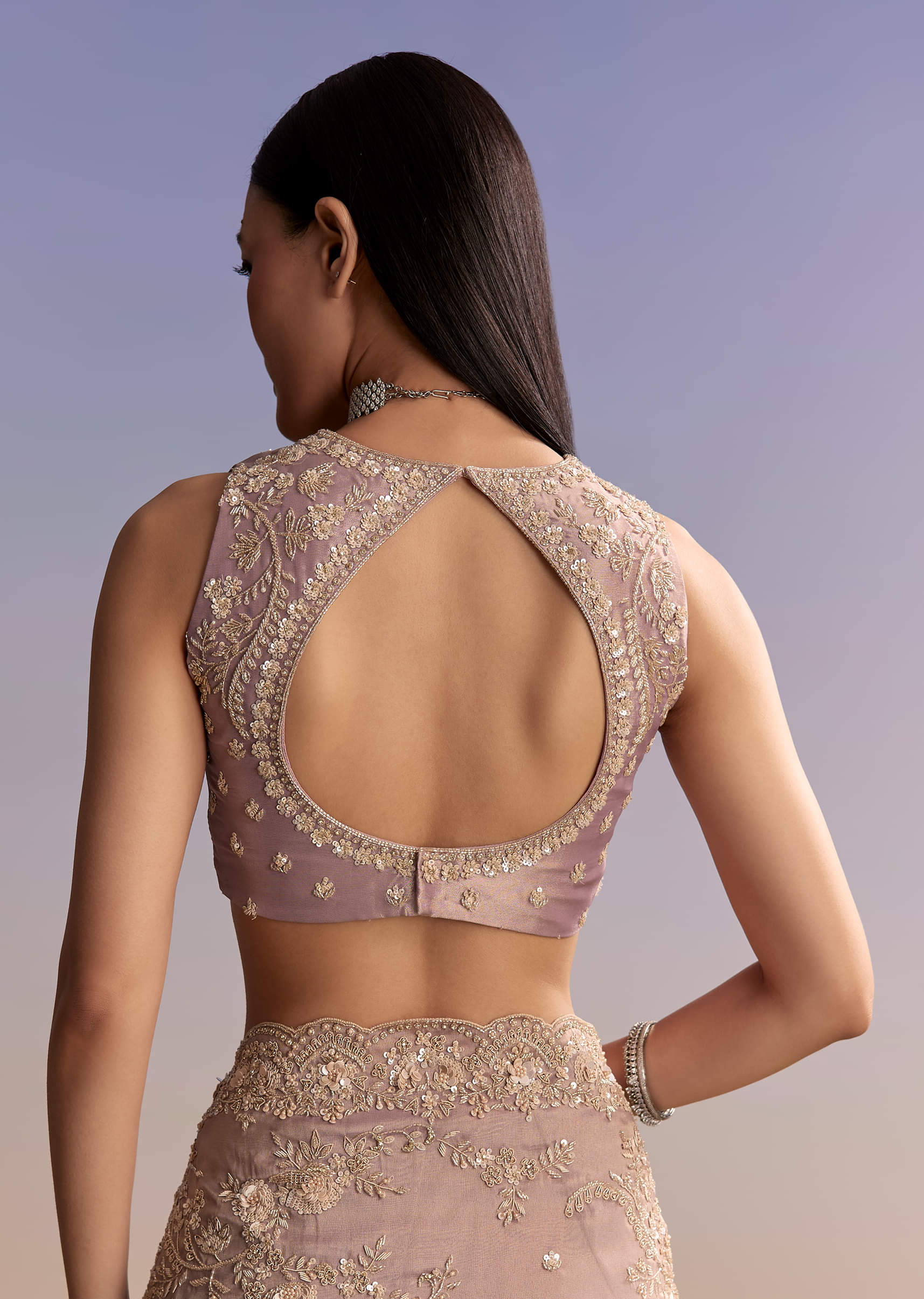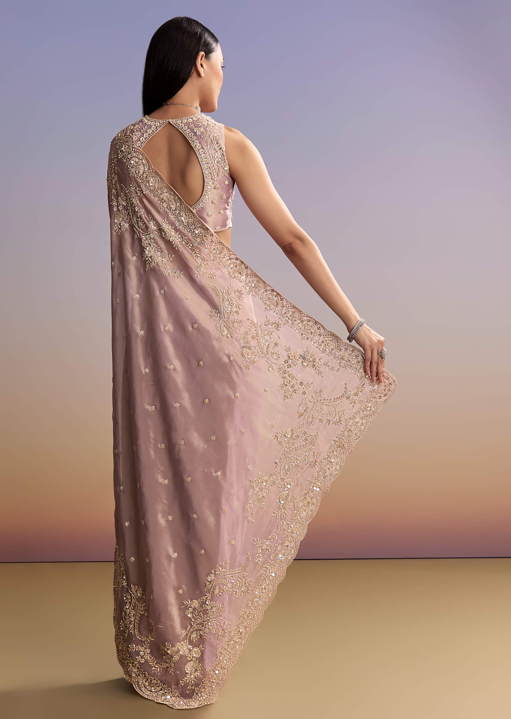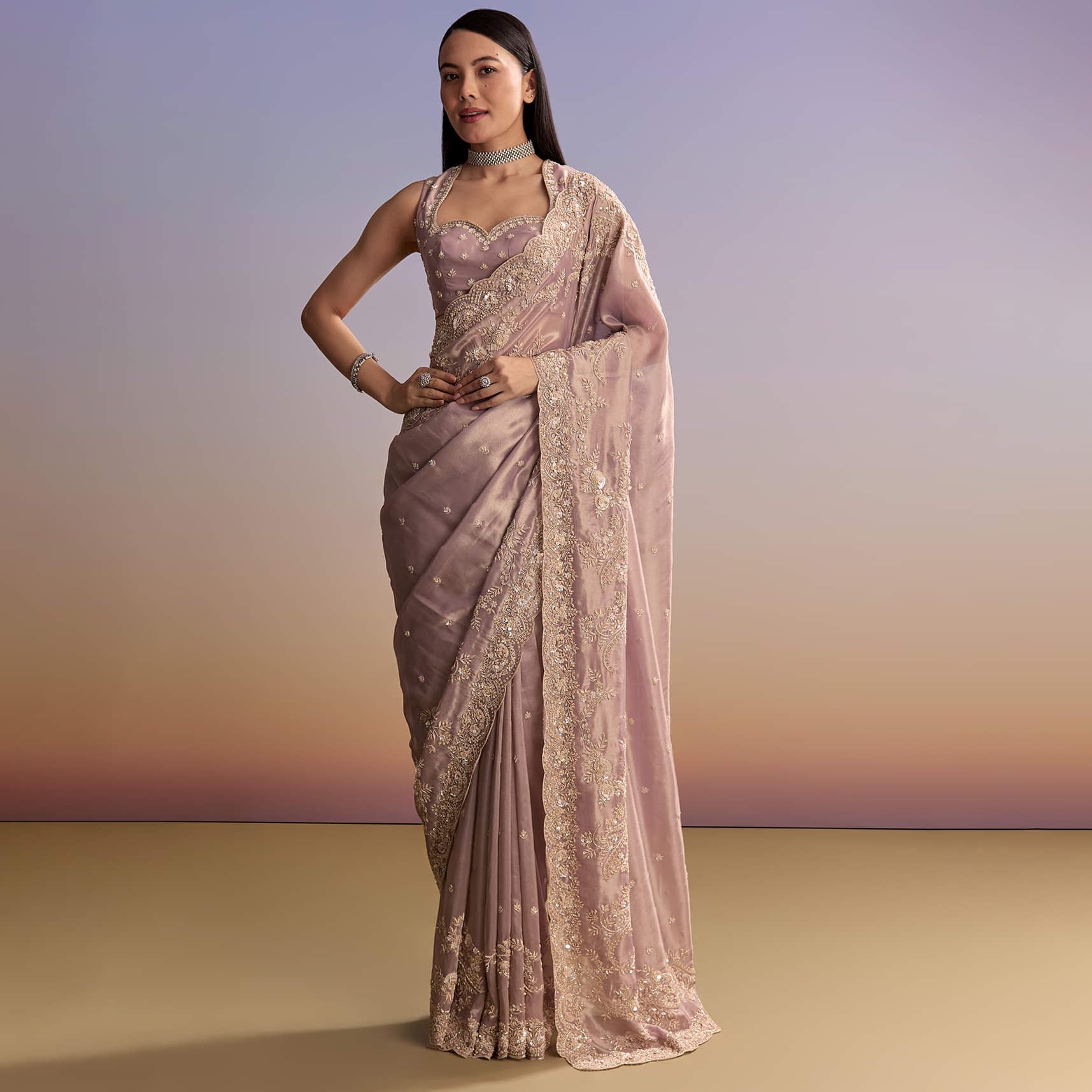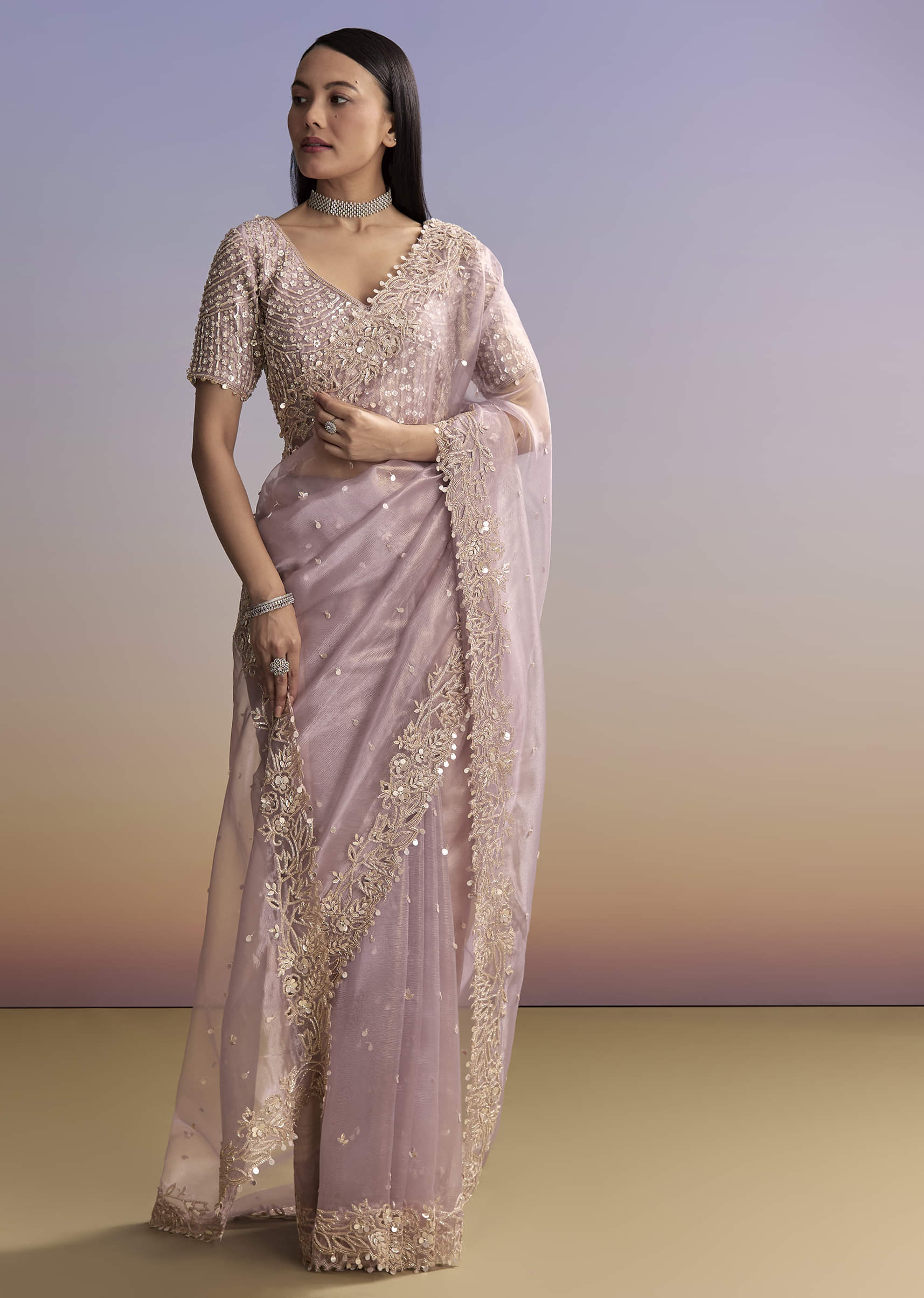 Lavender Tissue Saree With Zardosi And Sequin Embroidery