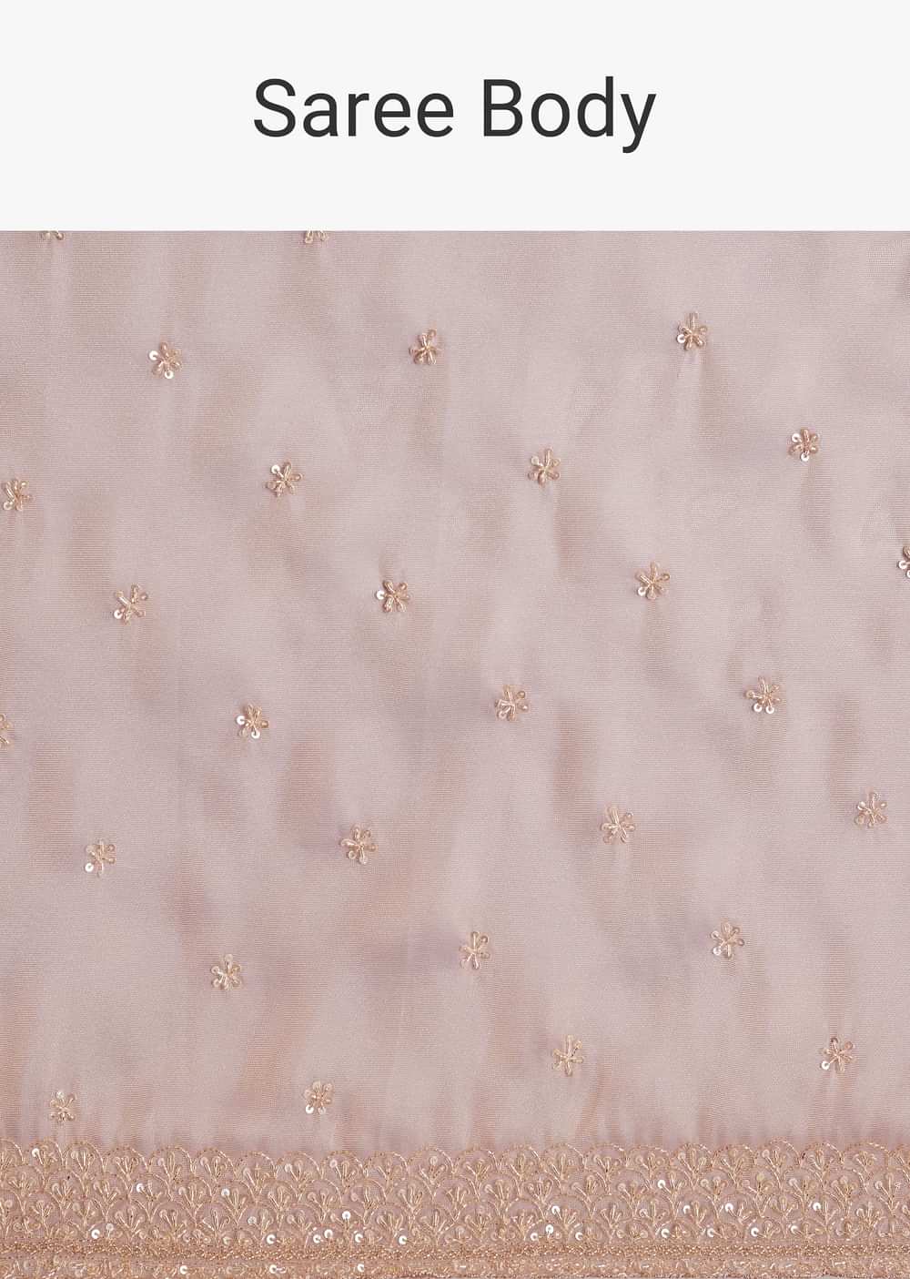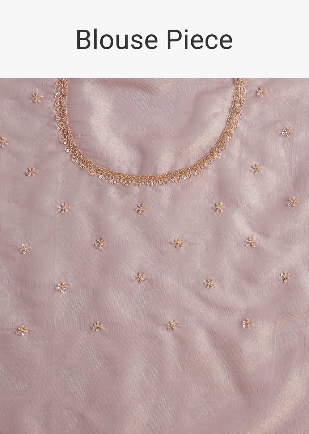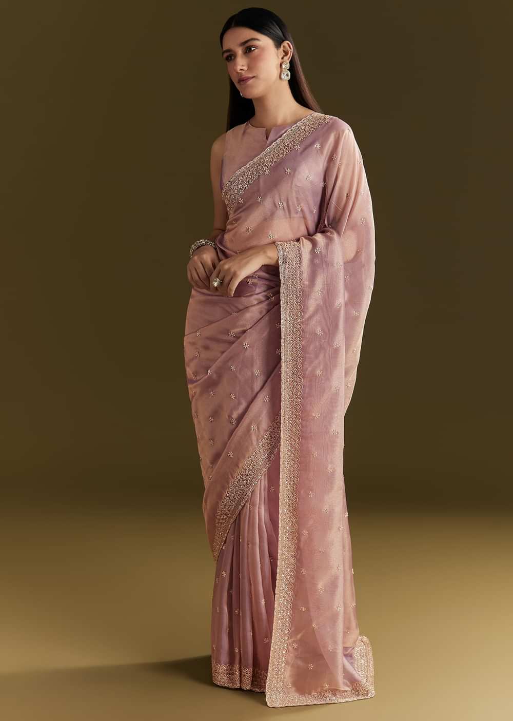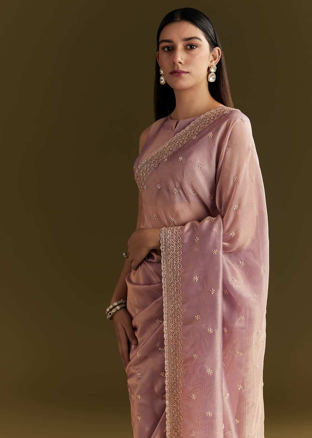 Lavender Tissue Silk Embroidered Saree With Scallop Border