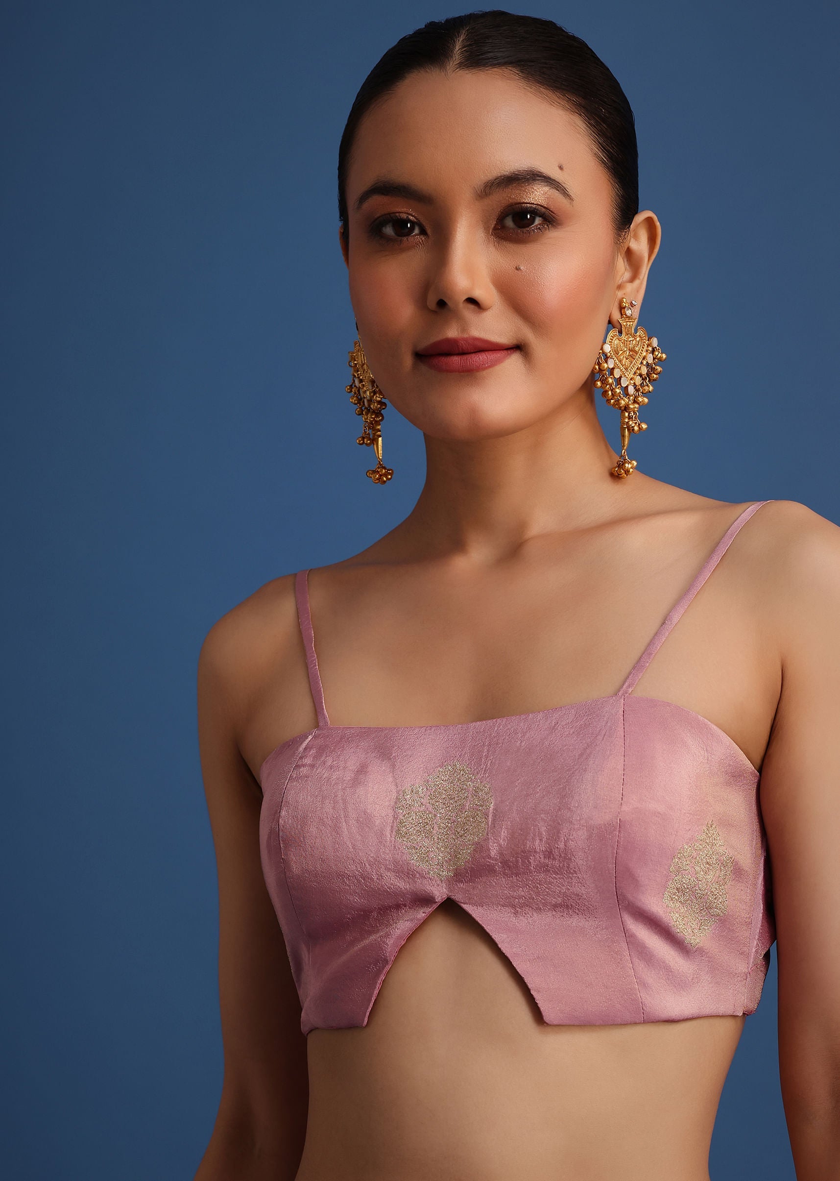Lavender Tissue Silk Saree With Zari Frill Lace Border