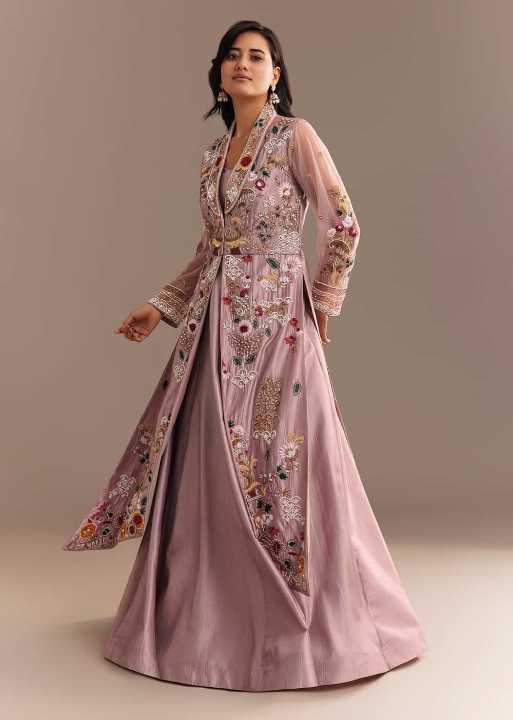 Lavender Zardosi Embroidered Jacket Lehenga Set