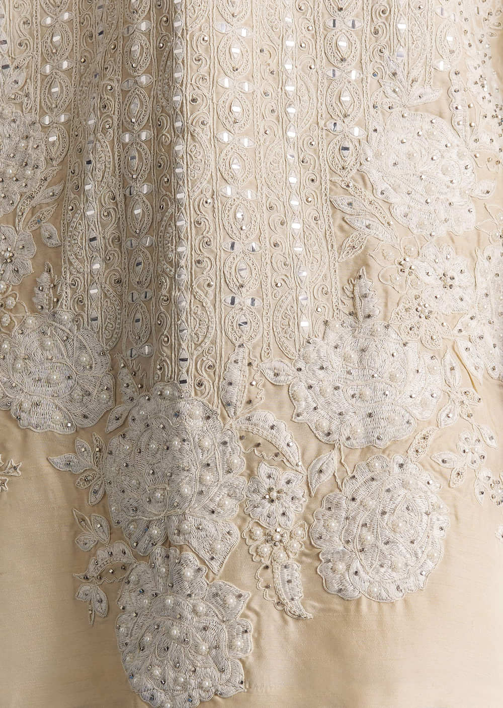 Light Beige Silk Embroidered Kurta Set
