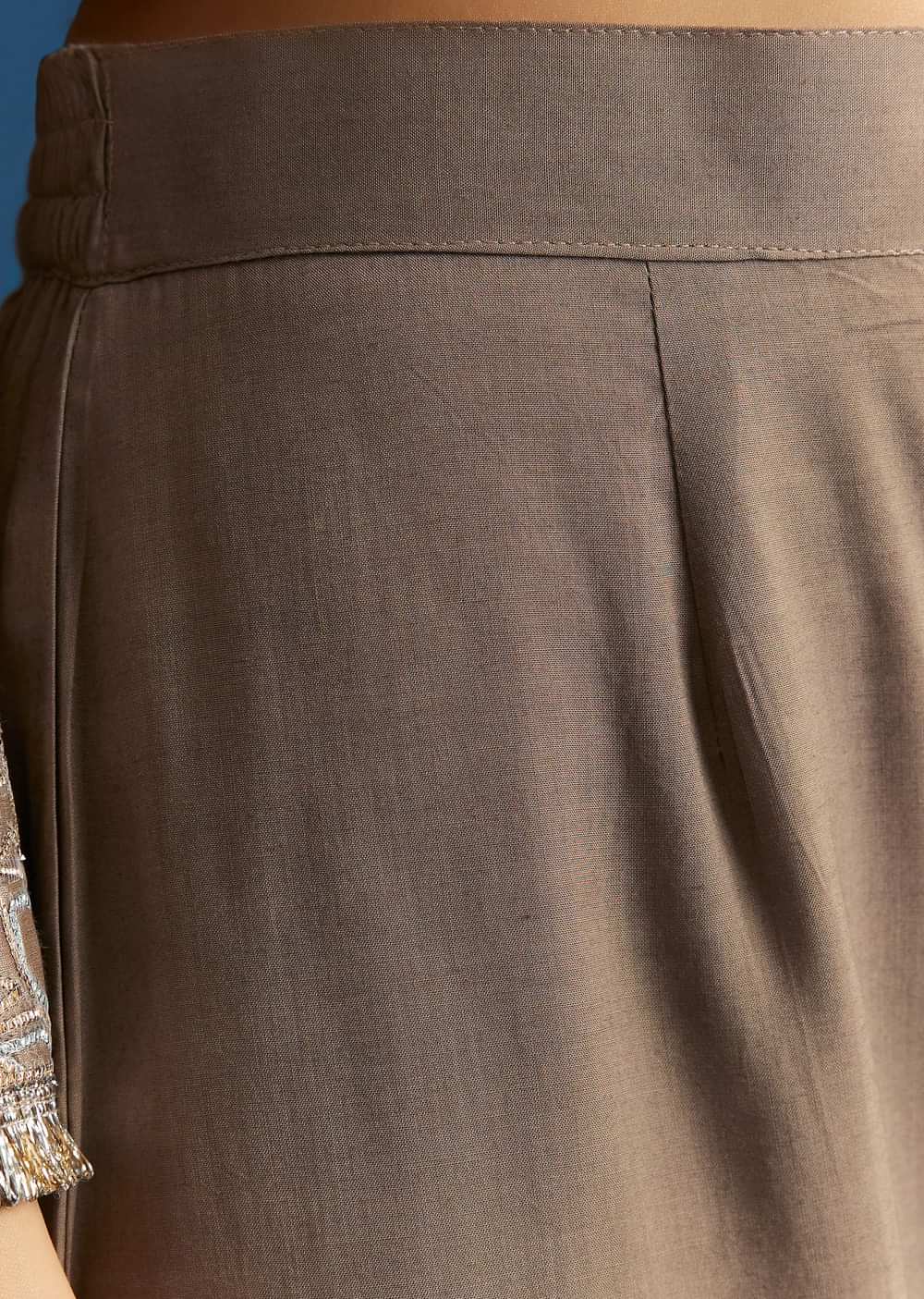 Light Brown Chanderi Anarkali With Gotta Lace And Crush Tissue Dupatta