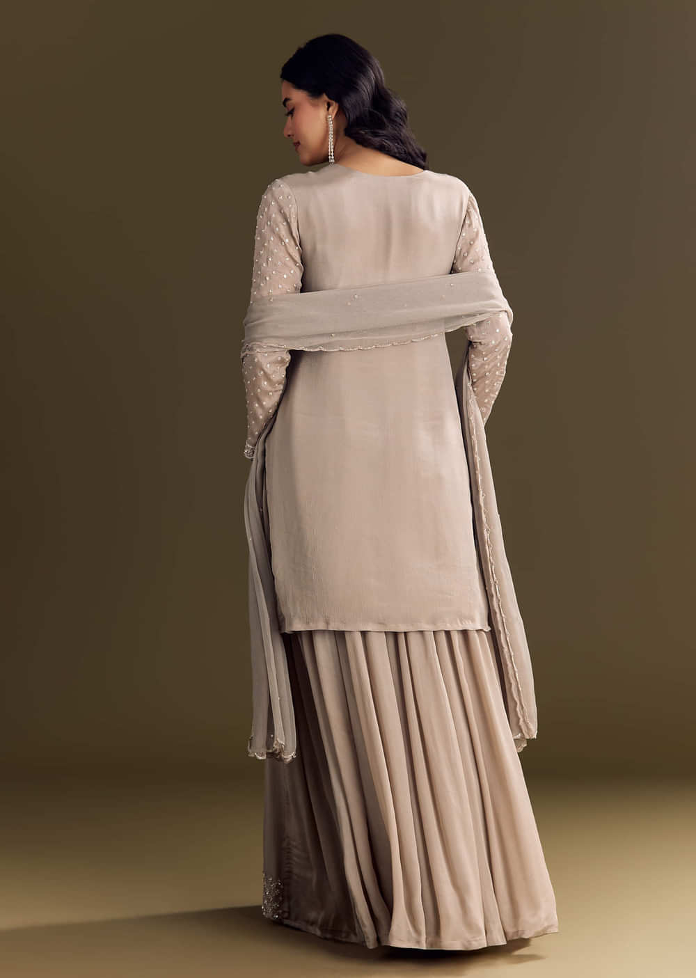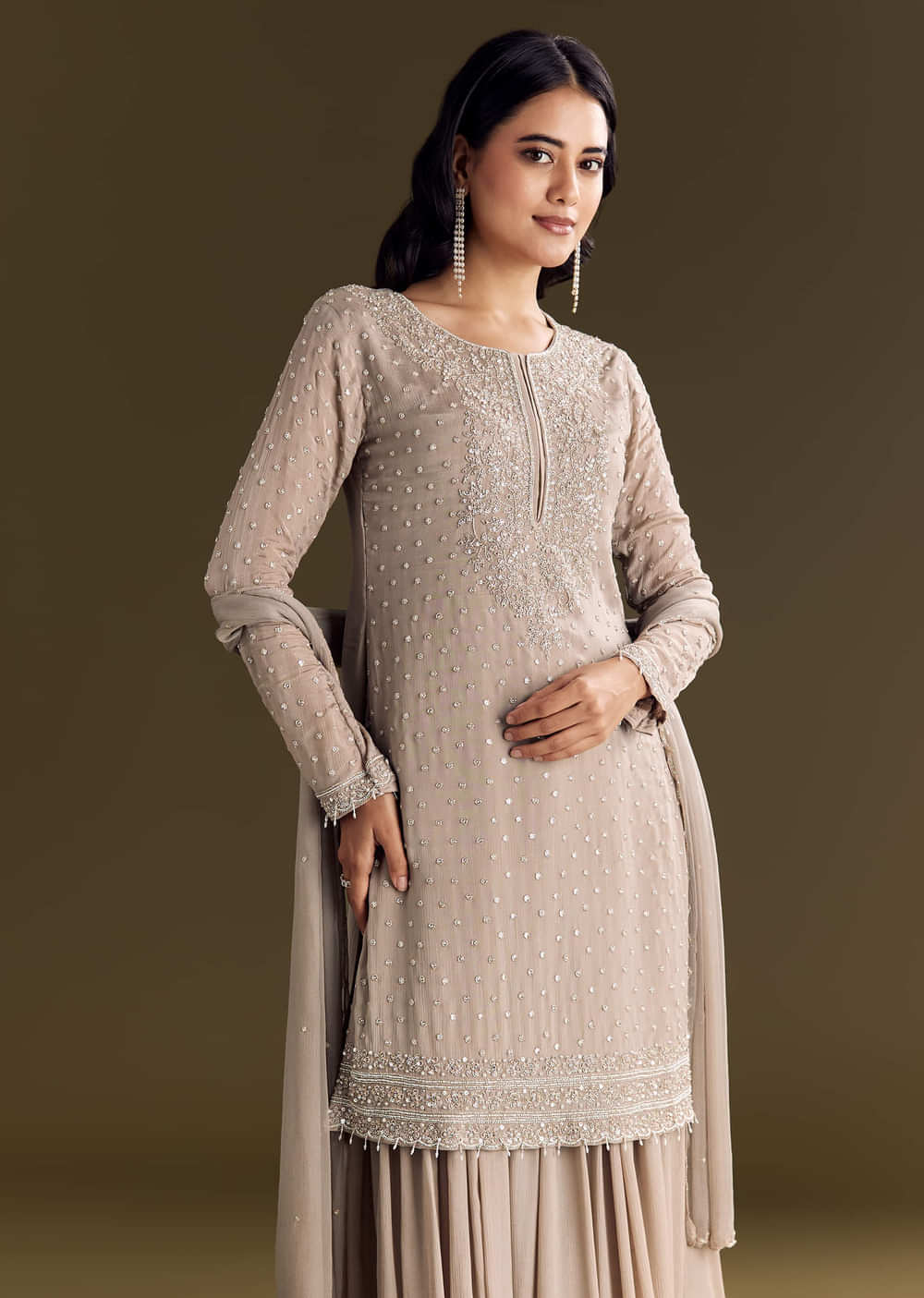 Light Brown Kurta Set With Sequins Palazzo And Dupatta