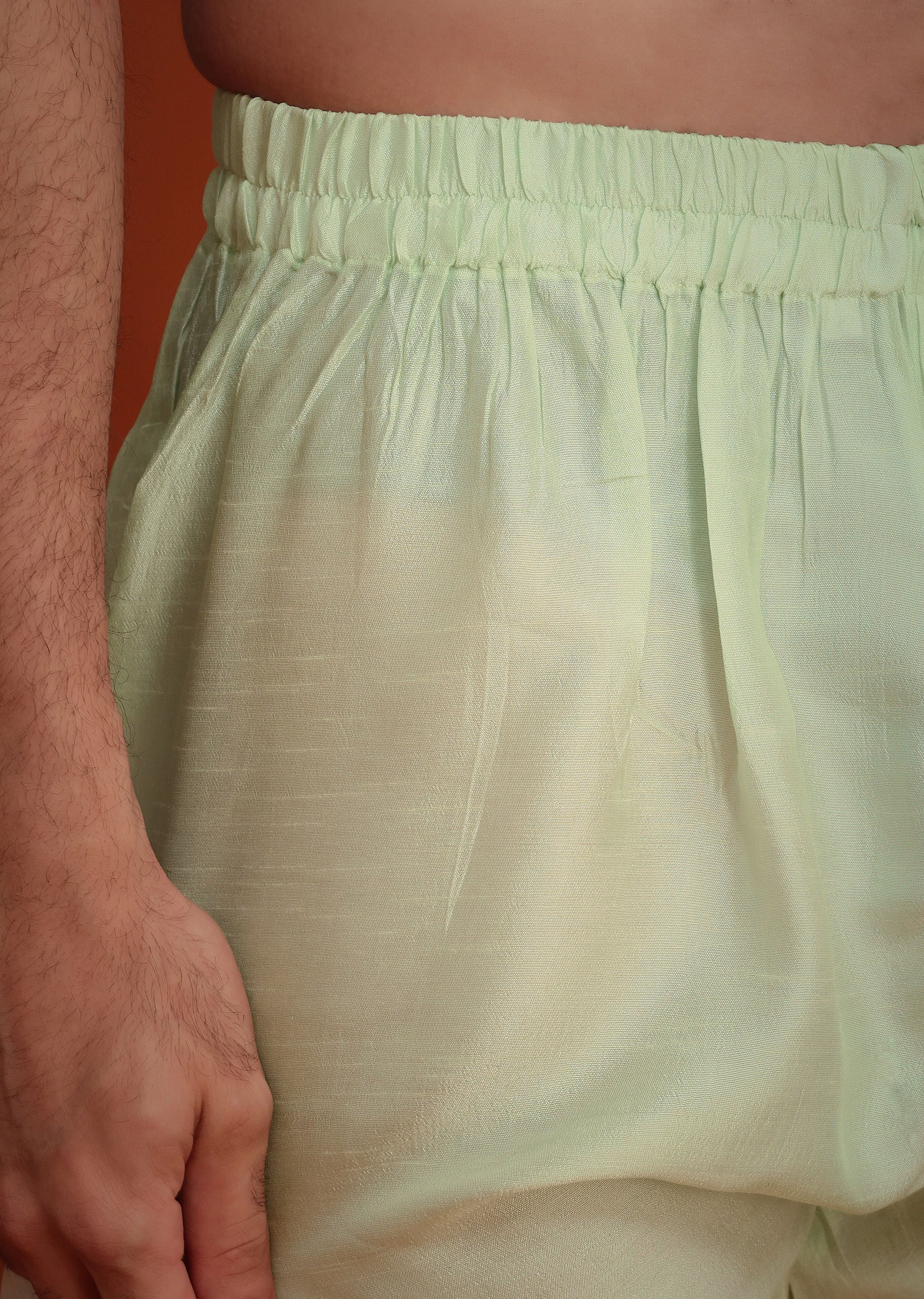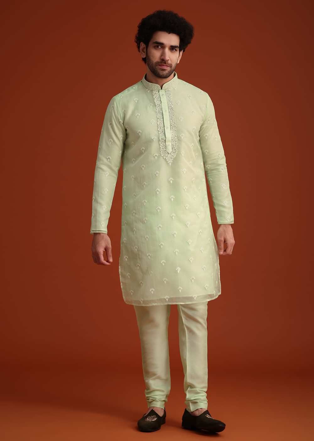 Light Green Organza Aligarhi Kurta With Zari Embroidery
