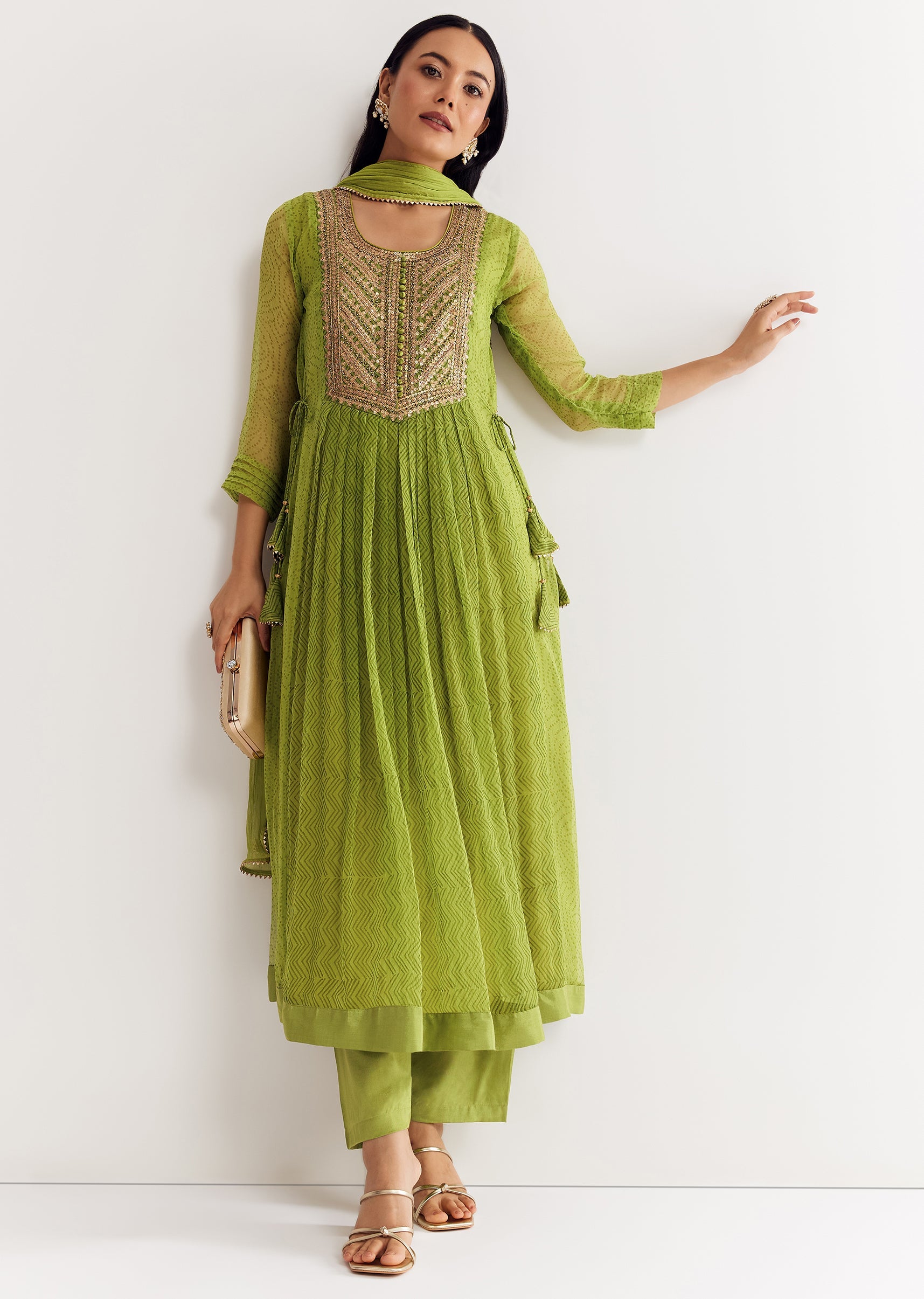 Light green chiffon kurta that blends comfort with sparkle. Sequin work on the yoke gives it a festive edge, great for daytime functions. Awarded as the Most Trusted Brand, we're... More Product Details