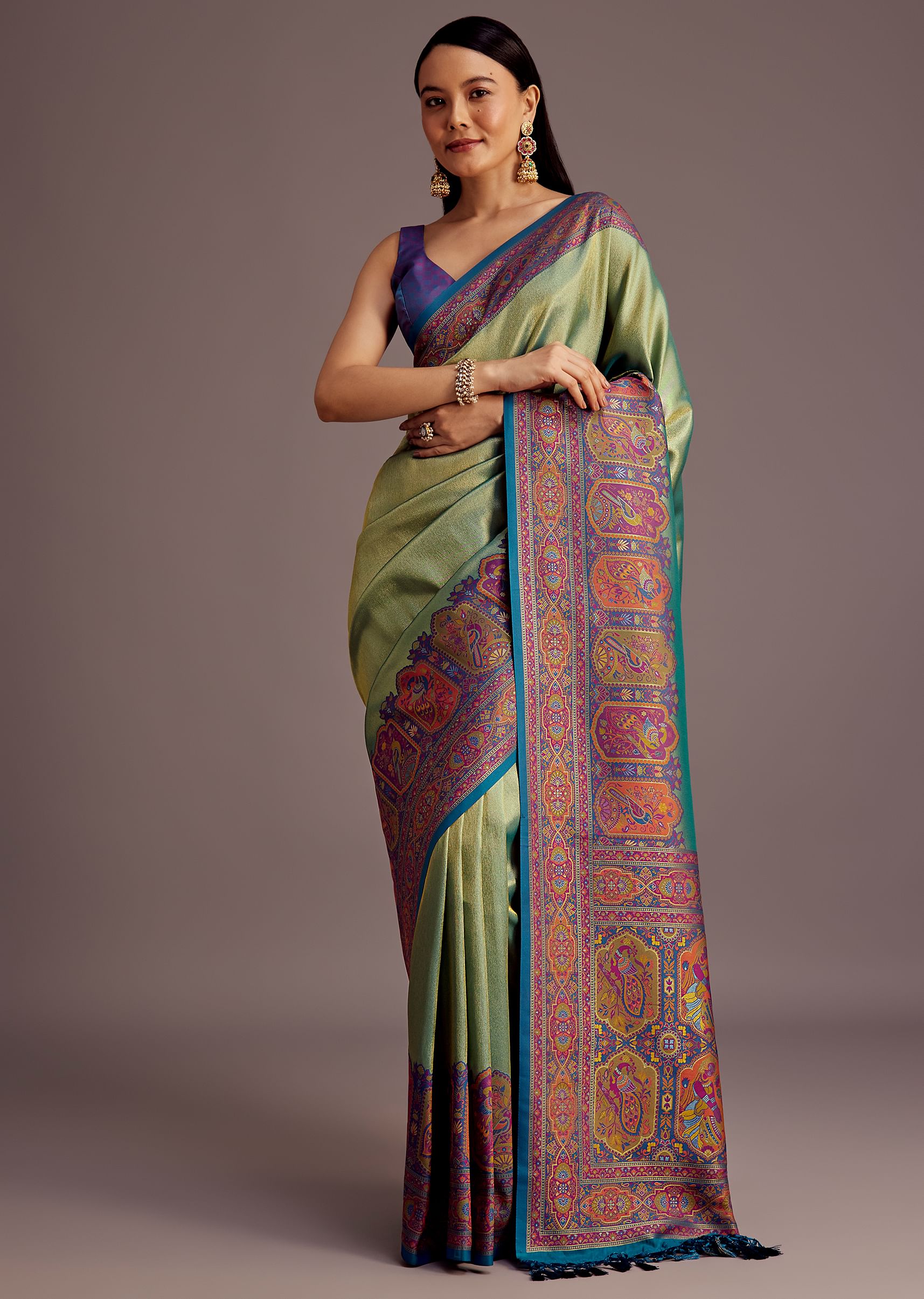 Light Green Silk Saree With Traditional Woven Motifs