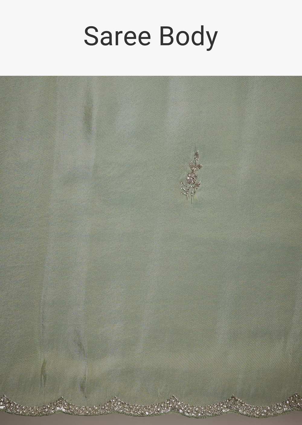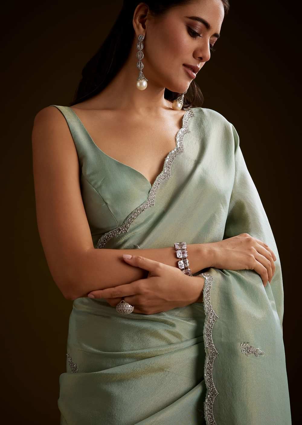 Light Green Tissue Saree With Cutdana Embroidery And Scallop Border