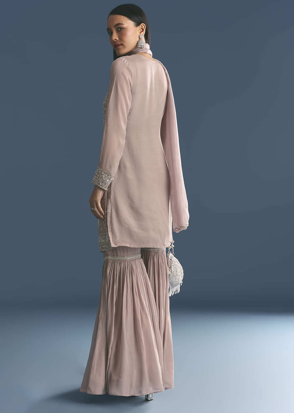 Light Lavender Chinon Kurta Sharara Suit With Moti Work