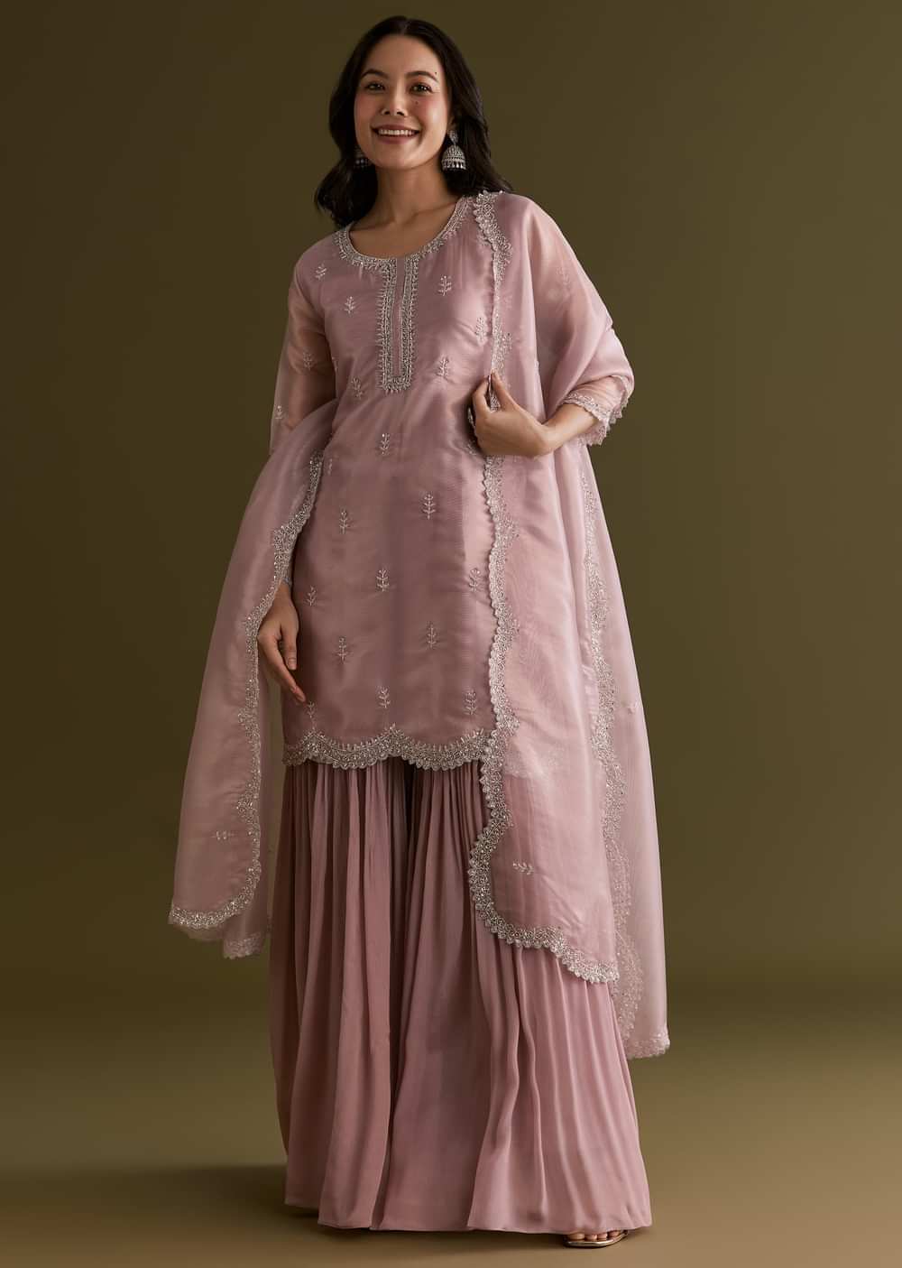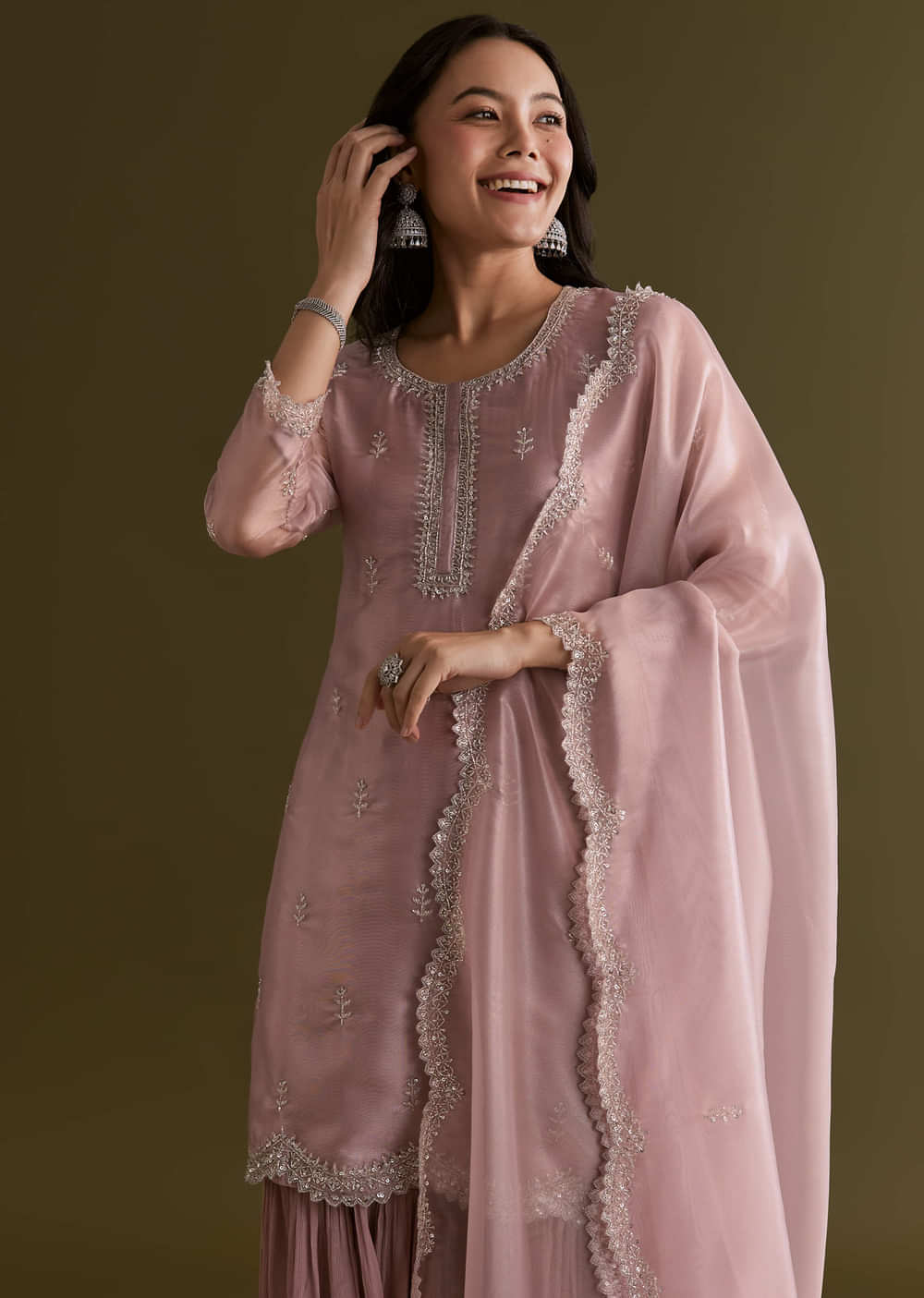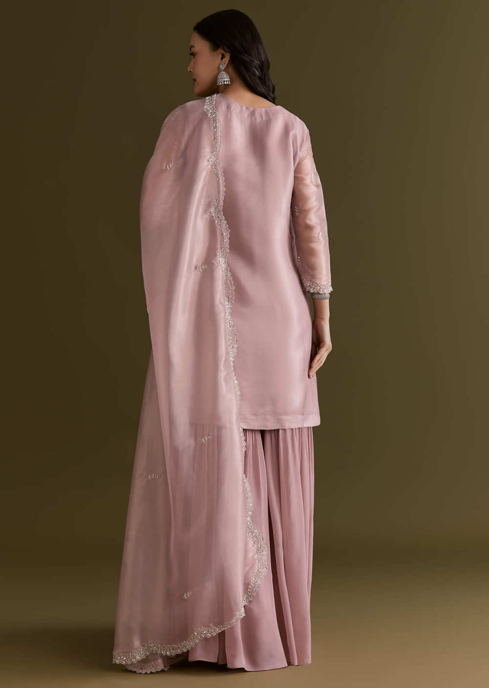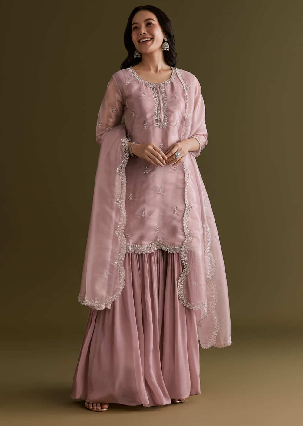 Light Lavender Tissue Kurta Sharara Set With Sequins And Cutdana Work