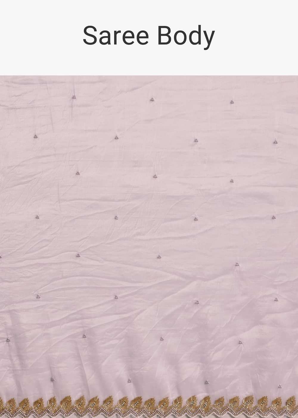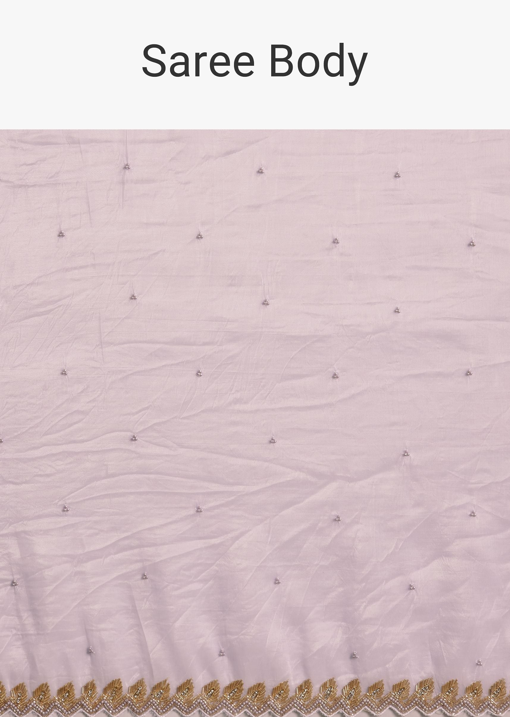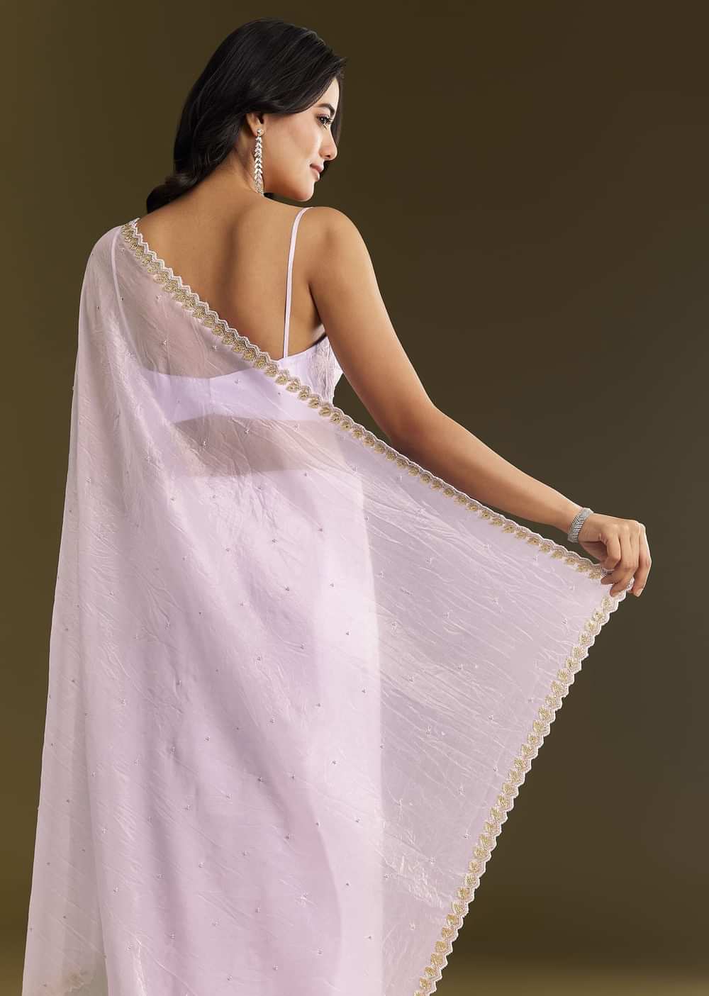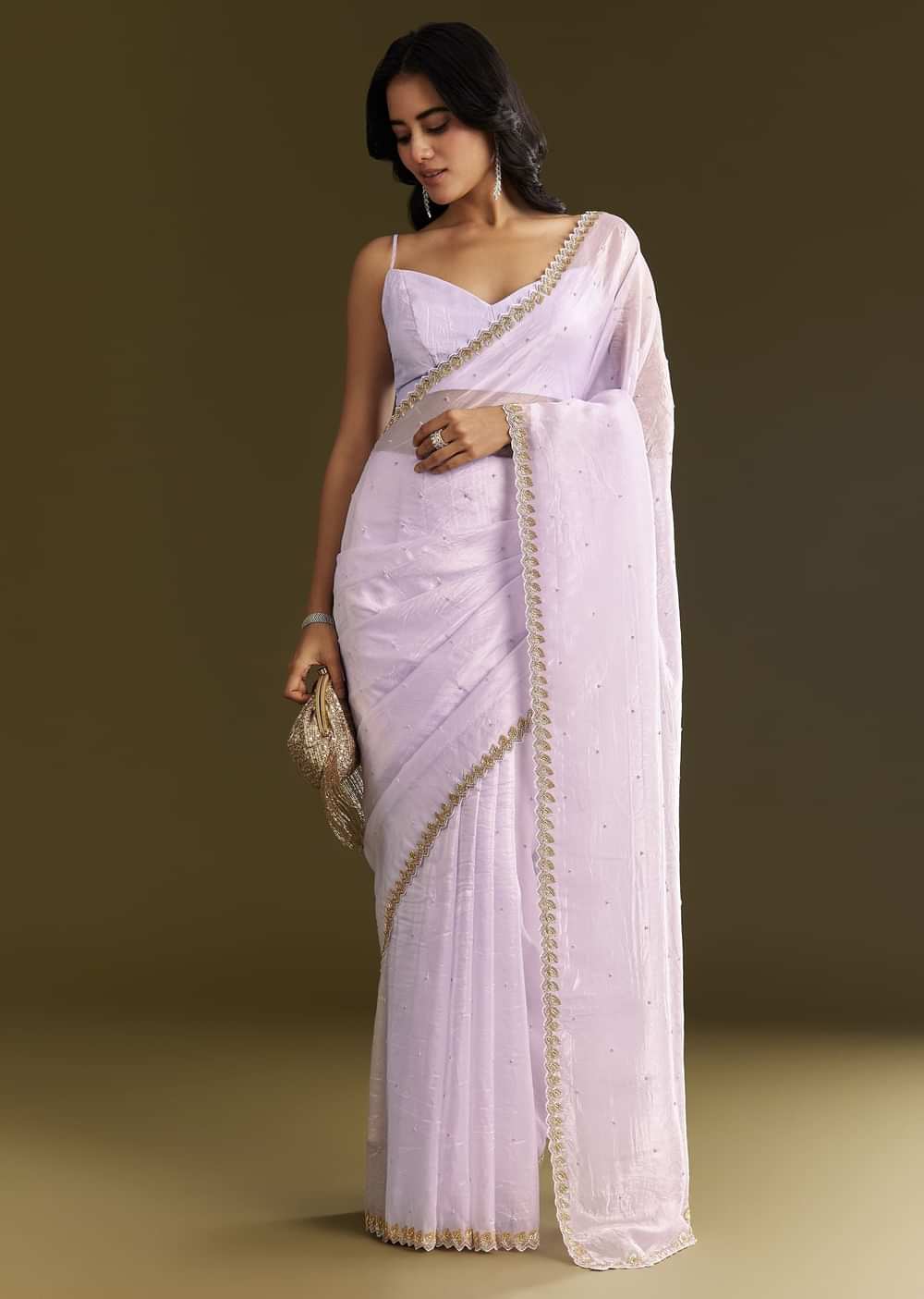 Light Lavender Tissue Saree With Cutdana Beads Embroidery And Scallop Border