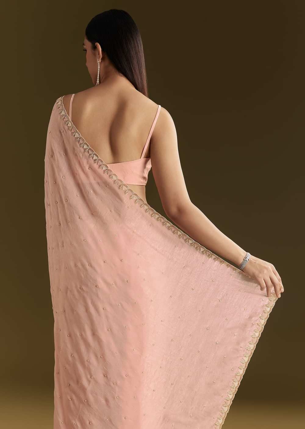 Light Peach Tissue Silk Saree With Stone Embellishments