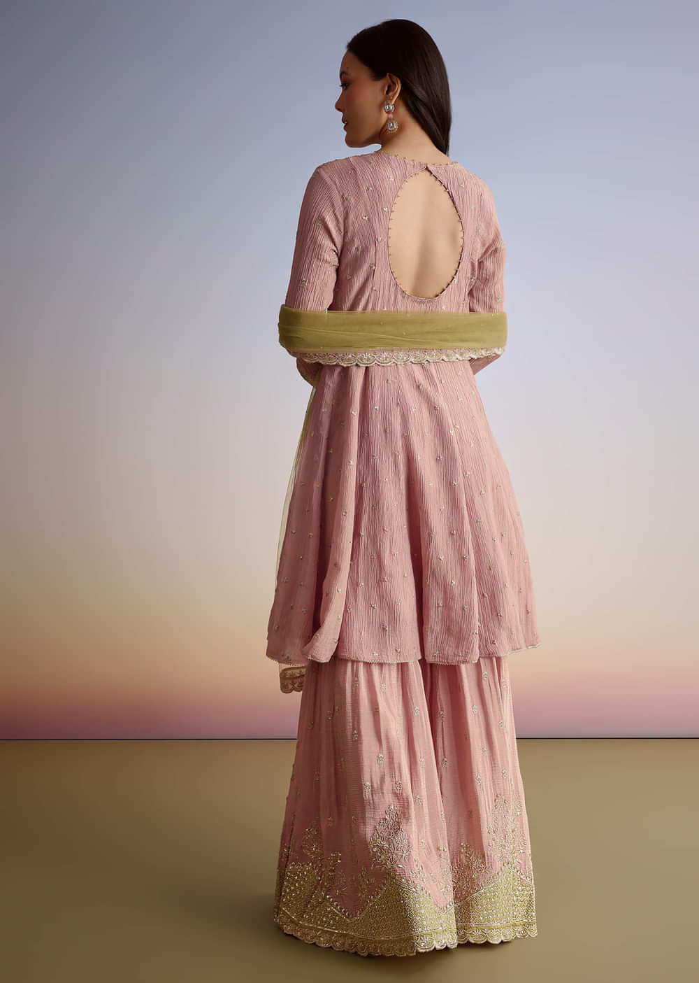 Light Pink Crush Tissue Sharara Suit With Zari Sequins